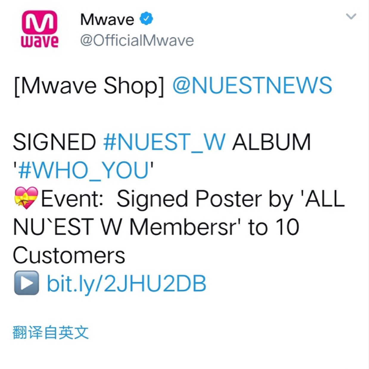 💝新闻:NU'EST W的全员亲笔签名专辑,送给十位顾客