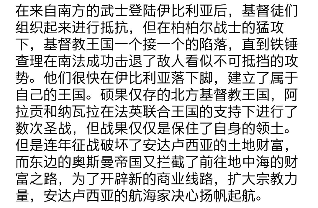 他们首先沿着非洲海岸南下,到达了今天的马里,在南方黑人苏丹国的指引下,msl航海家闯过西风带,到达非洲南端,顺利进入印度洋。但是印度洋的奥斯曼海军毫不留情地拦截了安达卢西亚的船队,他们必须另辟蹊径。1490年一位热那亚航海家因为坚信向西航行就能到达印度,而被嘲笑和迫害,他最终选择来到安达卢西亚哈里发的宫廷。最终msl们支持他的主意,并为他准备了一支船队。1492年,哥伦布在经过了漫长的航行后终于抵达了一片未知的大陆,他登陆后宣布这片土地归安达卢西亚的哈里发所有,并将其命名为“马赫迪”。至此新大陆的热潮开启。