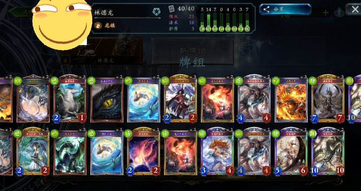 我的林德龙带了一些1费小法术比如藏宝图和戒指,3费原来凤凰的卡位给了日月轮回,不过感觉胜率还是不够理想,中速皇有黑王,言灵法一波也清不干净,复仇鬼每回合给的压力也大,除了打妖或者打一些铺场快攻有优势之外,其他都是小劣,我现在就等着菲琳来了,有菲琳什么龙族卡组都会很强