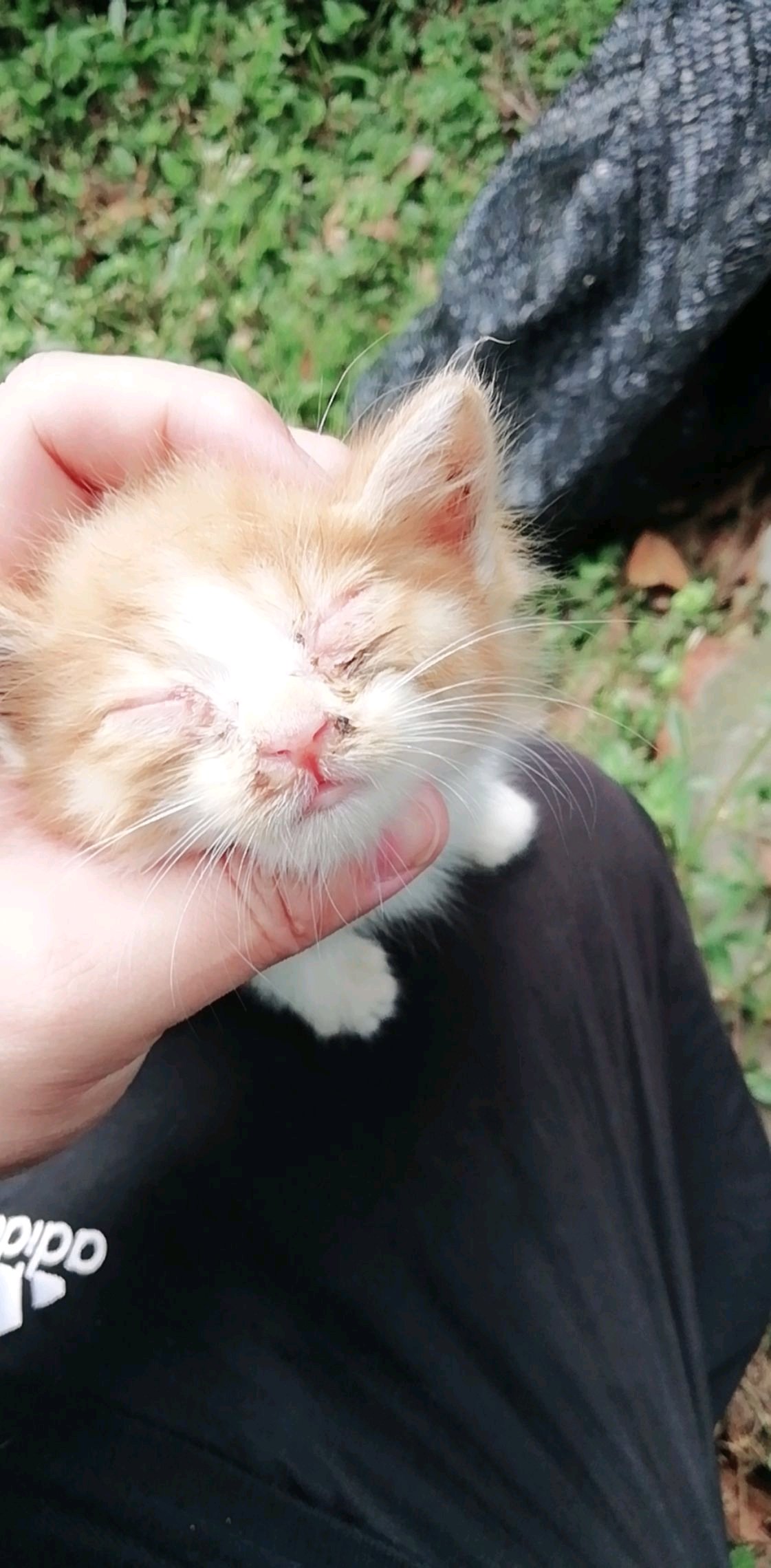今天在小区遛狗时发现2只小猫,观察后怀疑2只小猫都有鼻支,因为2只都有流黄色粘液妆状鼻涕,眼睛粘液过多无法张开,如图左边那只好点有一只眼还可以张开,另一只双眼已无法张开,并不时伴有喷嚏声,请问可以吃什么药,还有母猫一直在守护着,一旦伸手去,母猫就做出攻击姿态,所以也无法喂药。