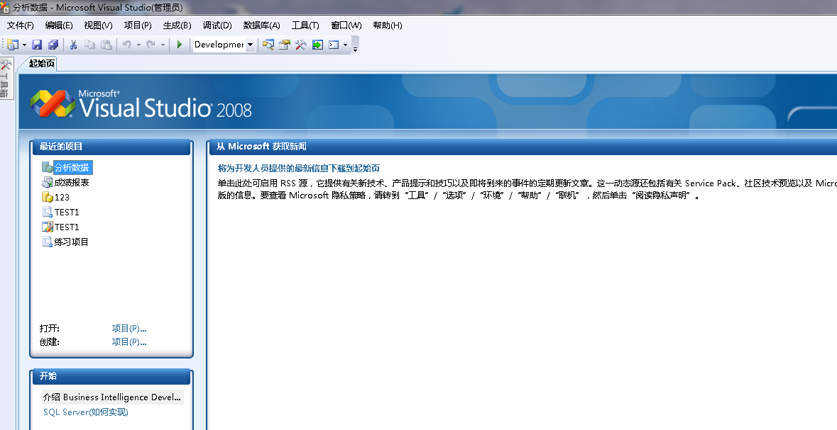 visual studio 2008打开新项目一直都是起始页,求帮忙