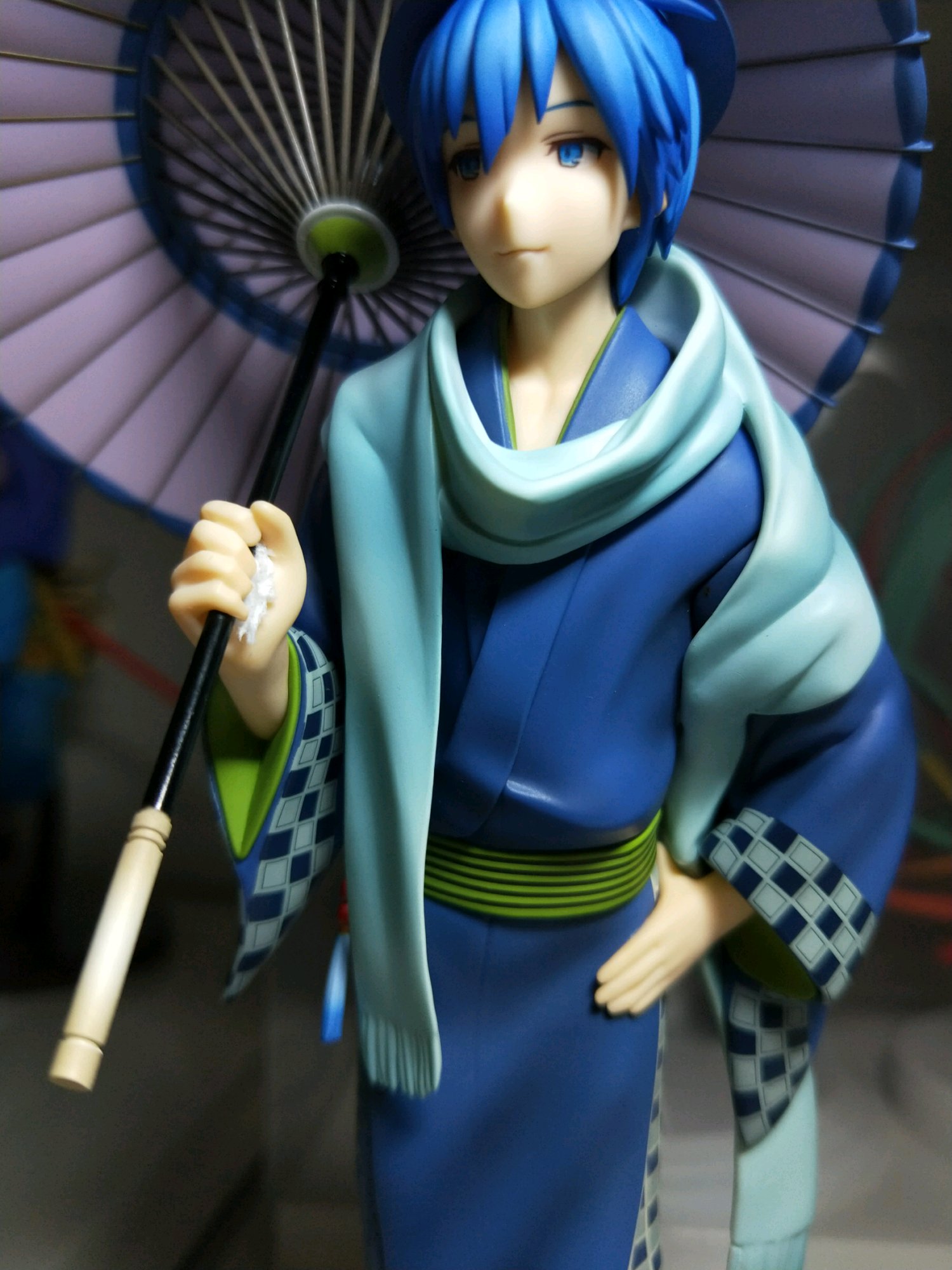 因为我要把大哥放进高度不太够的盒子里……所以必须让大哥拿伞中间,并且塞了一些卫生纸固定