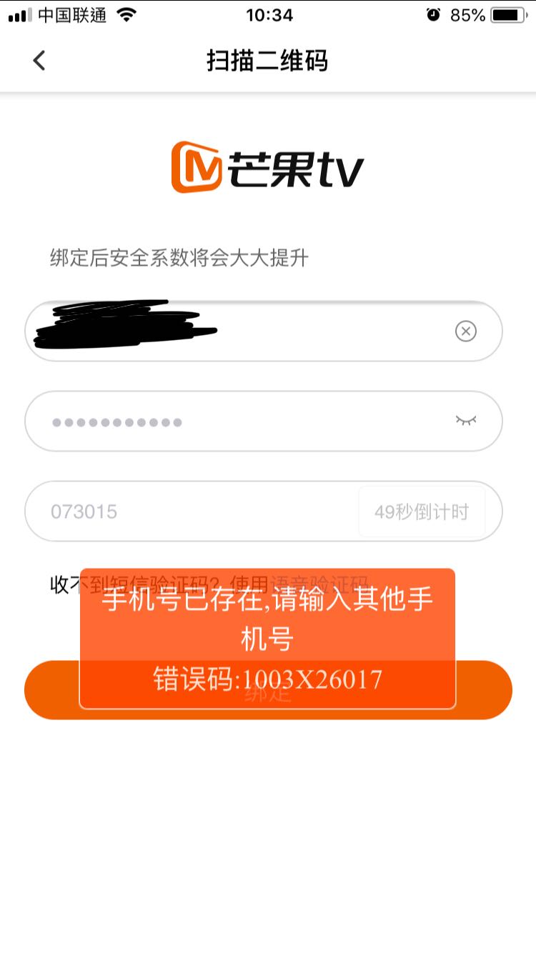 我的芒果TV用手机APP扫面绑定不了,显示号码用过,难道以后每次绑定都要去买一个新手机号码吗?见鬼呀