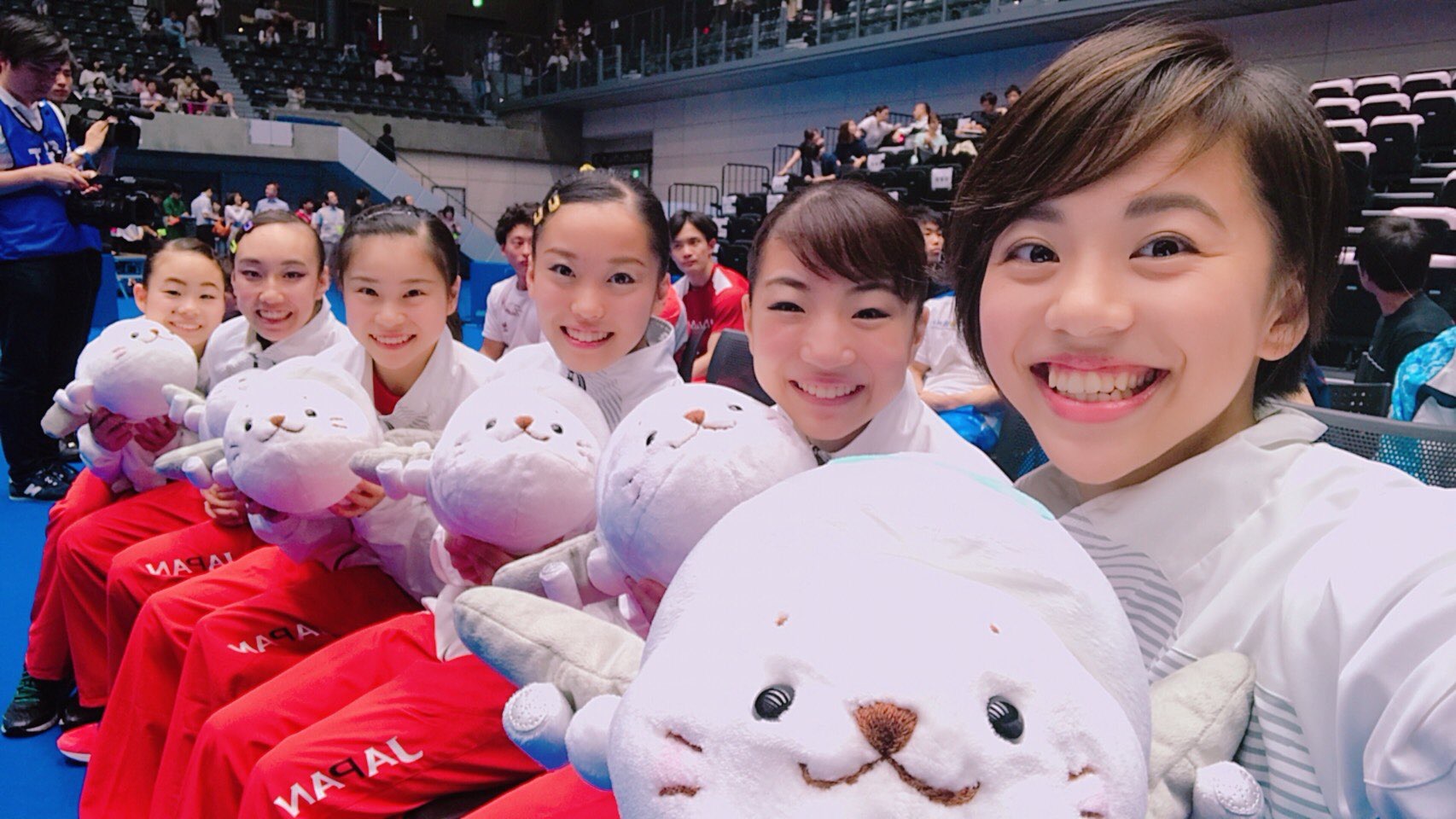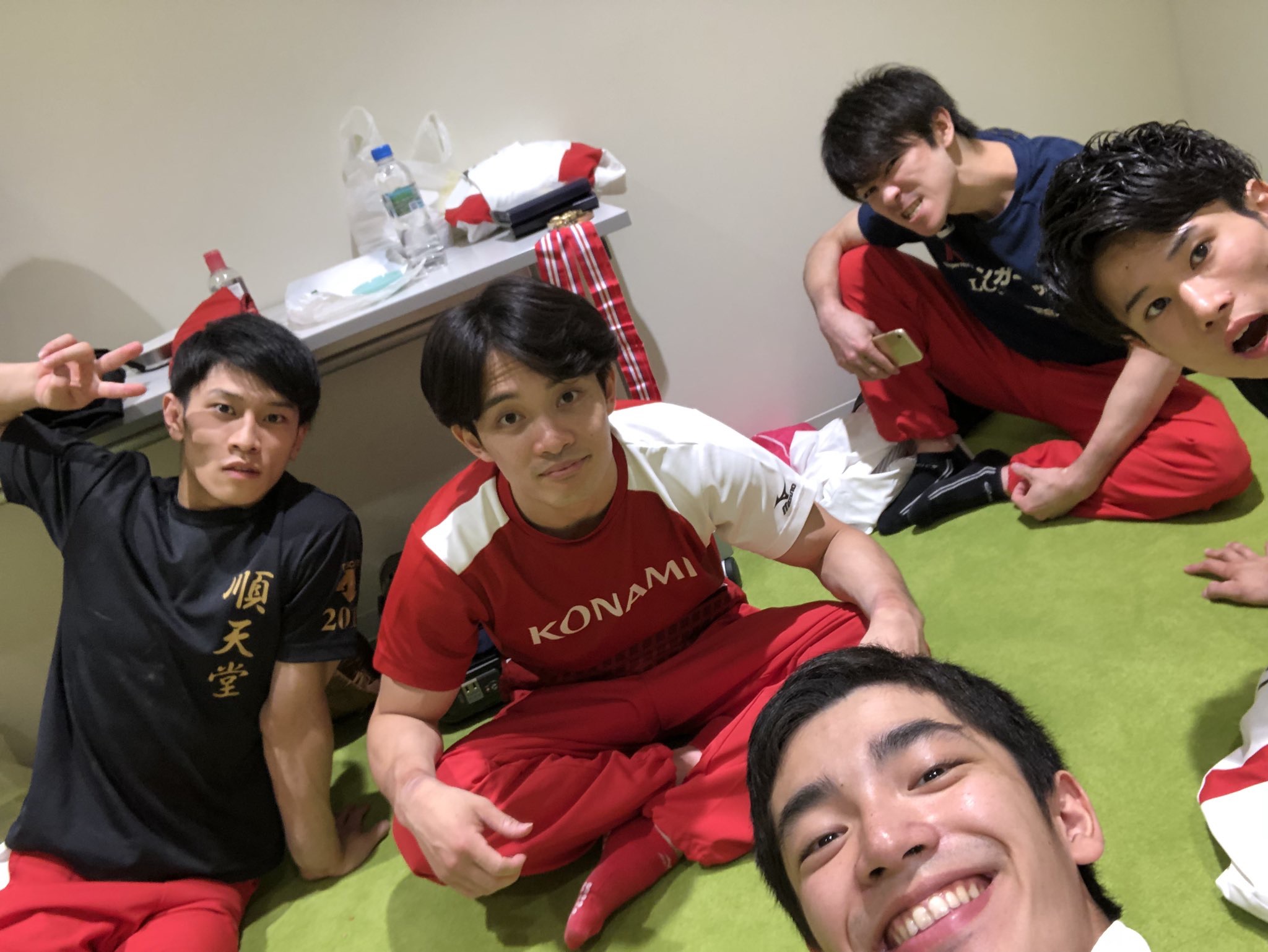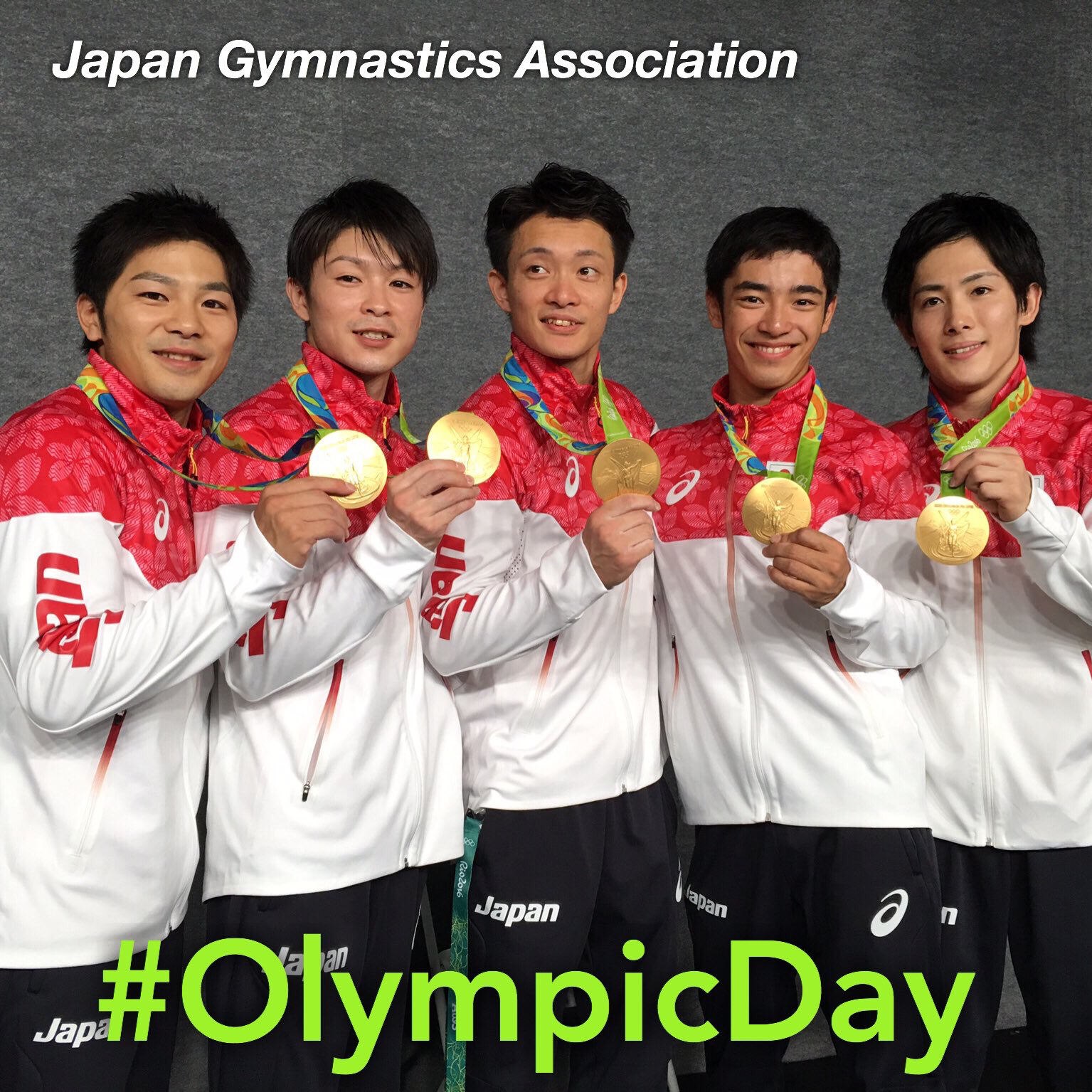 ),日体协推特放出了南宁世锦赛日本队三人的倒立图和里约OG的男团合影