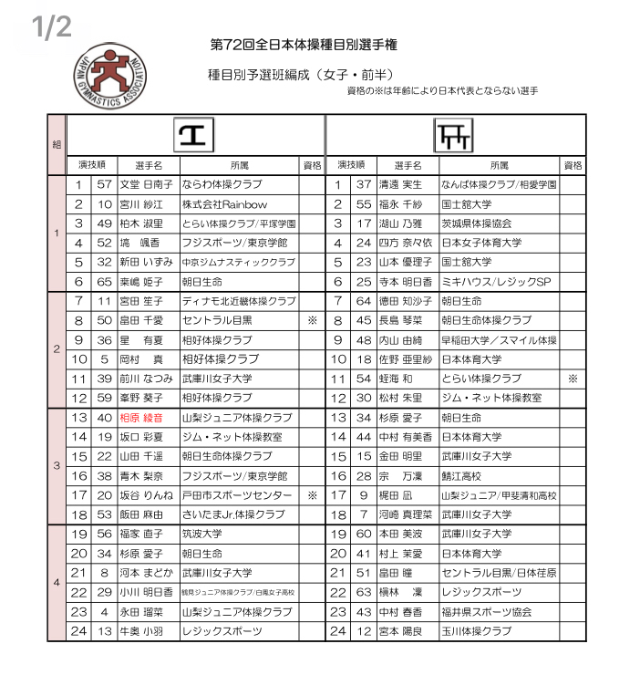 ☆★☆赛事★☆★第72届全日本体操单项锦标赛 6.30-7.1