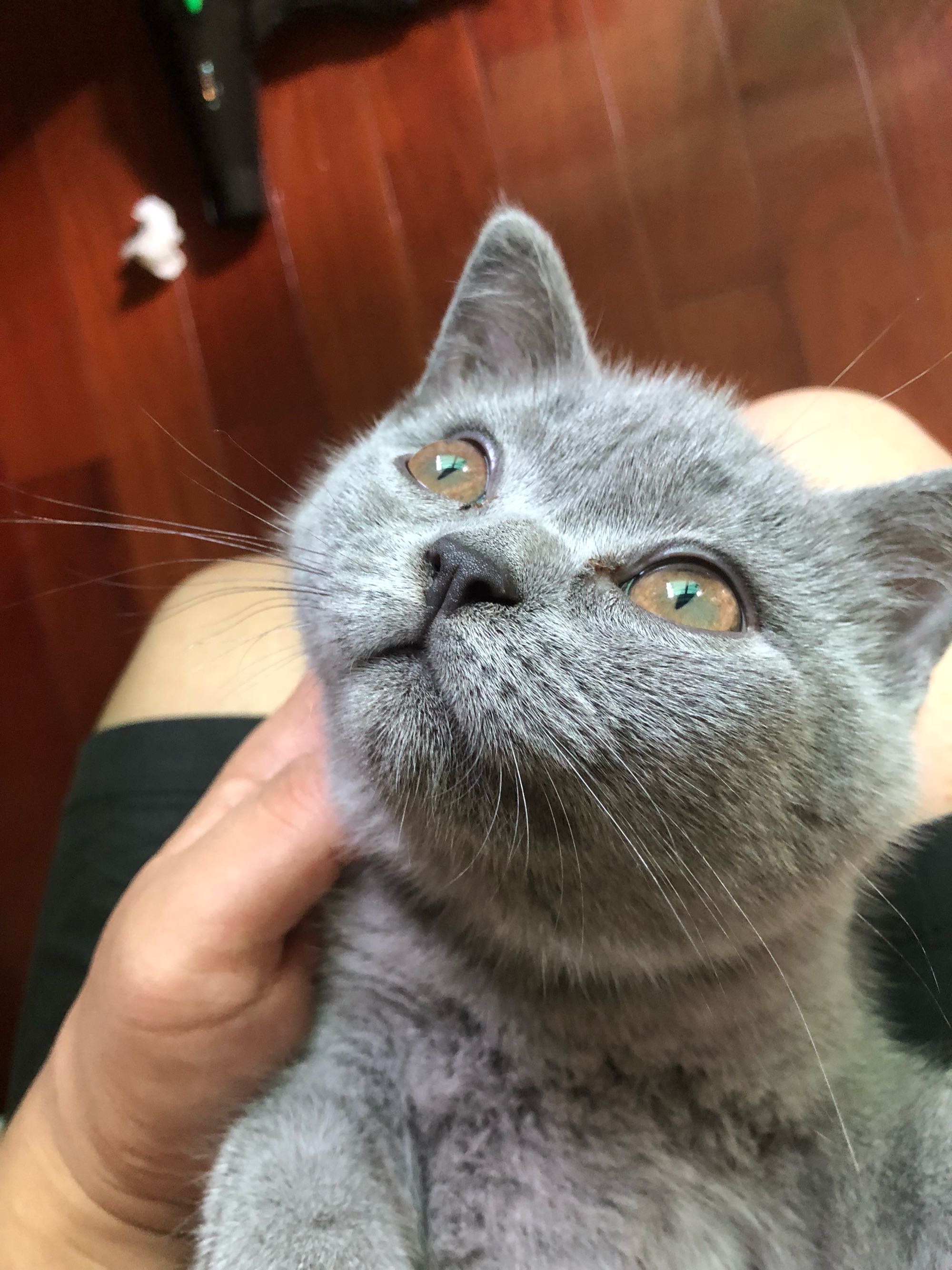 我家小猫咪眼睛也是外圈黄内圈绿色,晚上手机拍的,绿色不太明显看起来像灰。目前已经四个月大了。原先兽医在两个月大的时候说是蓝膜还没褪近,现在四个月应该是稳定了,还是这个颜色。