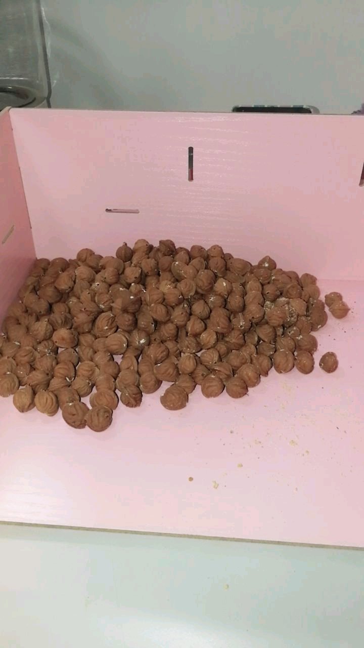 一堆桃核,打眼好慢