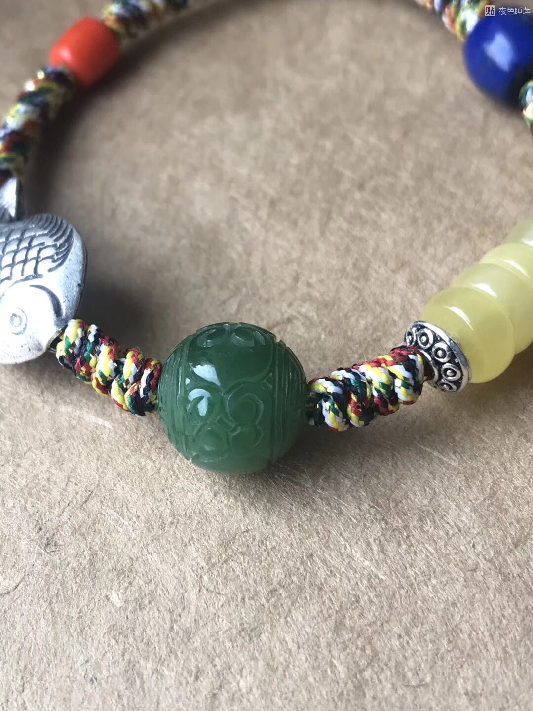 路灯色系的配搭。鹅黄、水红和翠绿,有的吧友串串多一起搭着带也有趣。蜜蜡比较娇气,不像玉石耐磨,小心磕碰磨损呢。