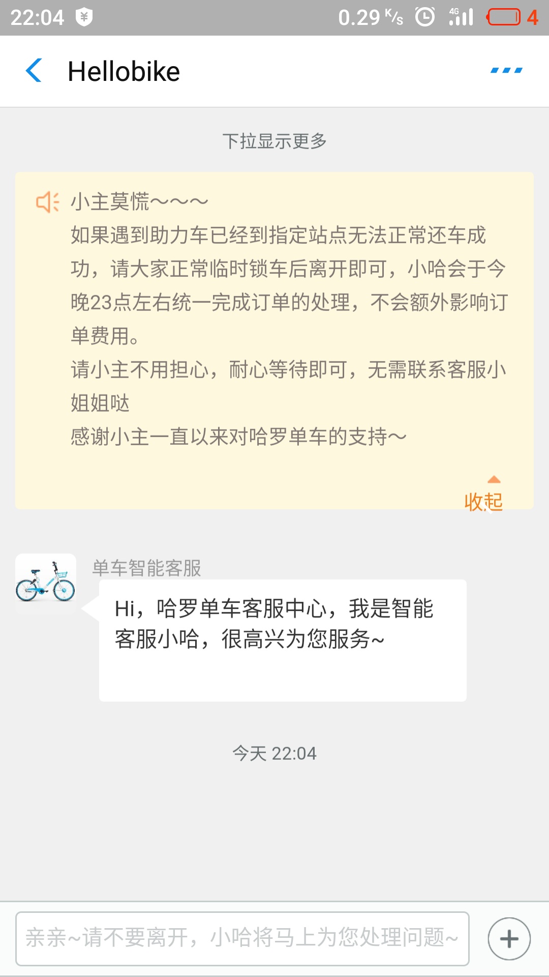 怎知锁车时,单车却没有提醒锁车的声音,可能出现故障,不知有没有及时锁车成功,联系客服,显示如下
