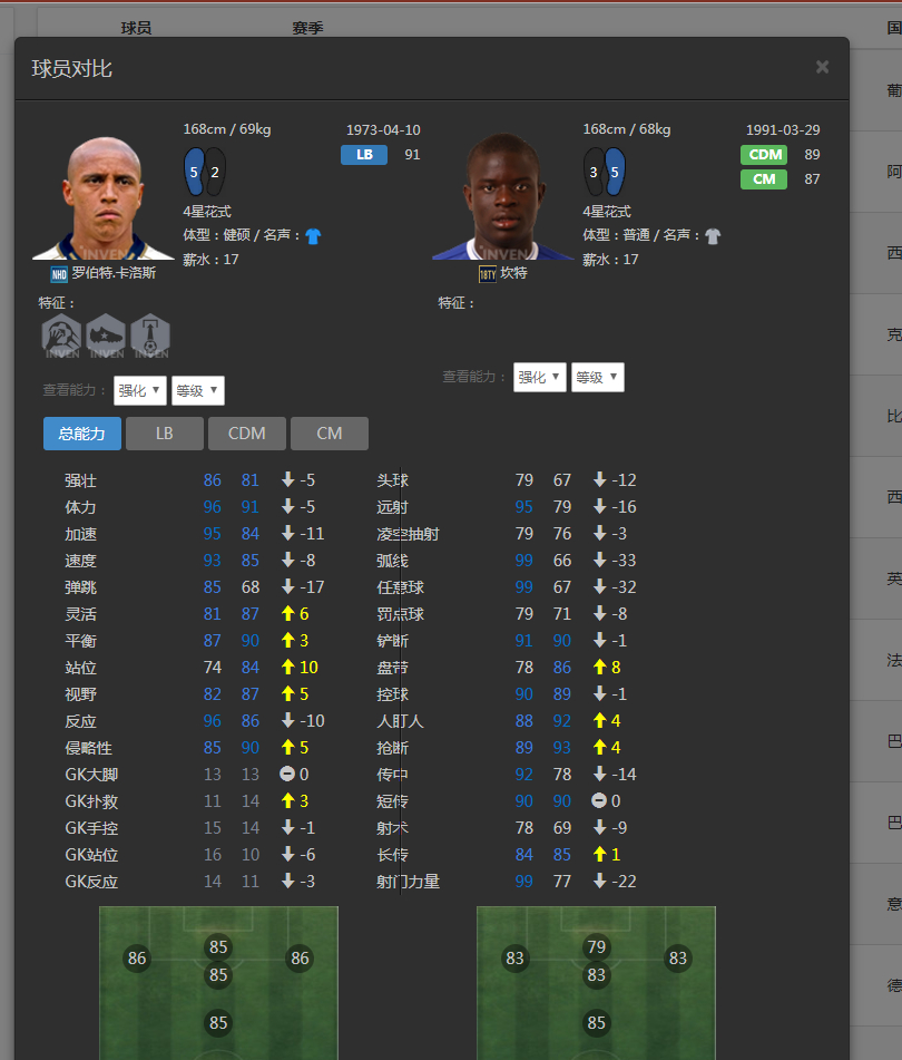 我拿卡洛斯打LCM,回防速度快,进攻插上积极,抢断射门什么的都不错,又有一脚远射,很好用。放LB确实浪费了。
