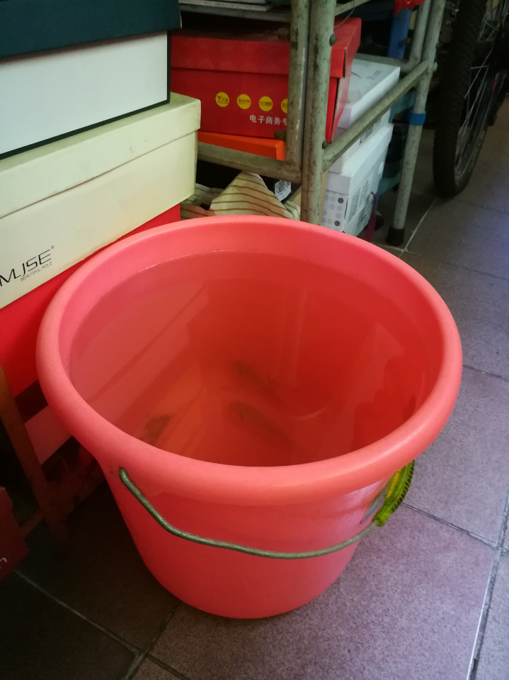 桶里有钓的几条小鲫鱼,准备放生,是否留着放个藕花盆进去