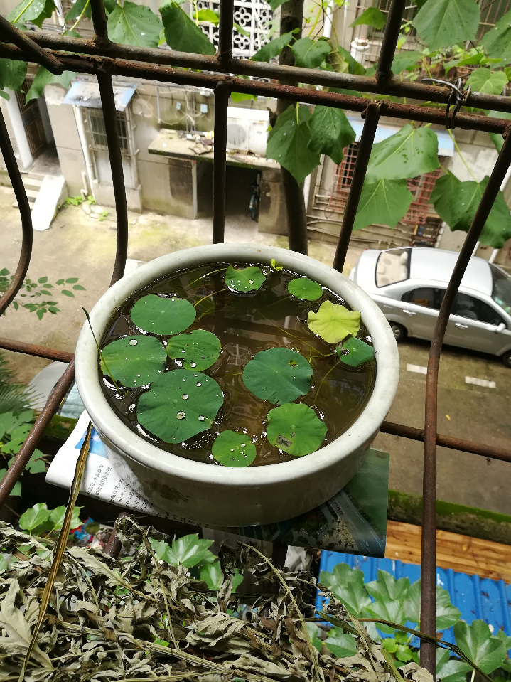 刚栽了棵进去就枯了,准备再栽一颗放养鱼的桶里
