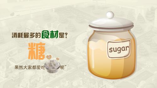 而在测试期间消耗最多的食材比拼中,糖以巨大的数量优势获得此殊荣,成为美食家重用食材之最。看起来各位美食家都很喜欢甜味呢,一定都是长相甜美的小哥哥小姐姐吧~