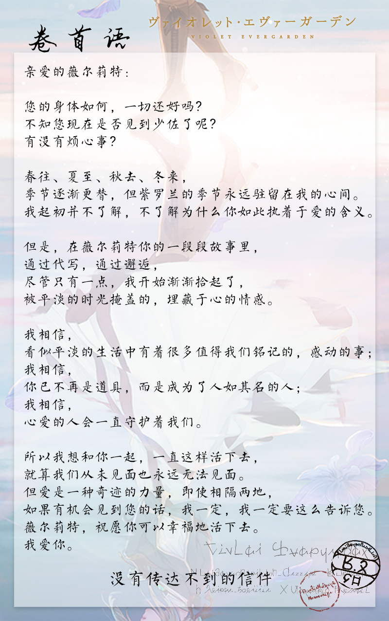 薇尔莉特万岁!!!支持楼主!永远支持紫罗兰永恒花园!