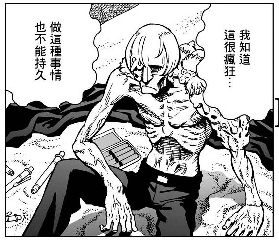 和15话前后篇里穆斯塔的状态对比,可以看出穆斯塔的身体也已经快崩溃了。15话前篇可以看出当时穆斯塔的人面肿分布在背部、左臂上臂,再加上脸部的一个,到本话已经蔓延整个上半身了。