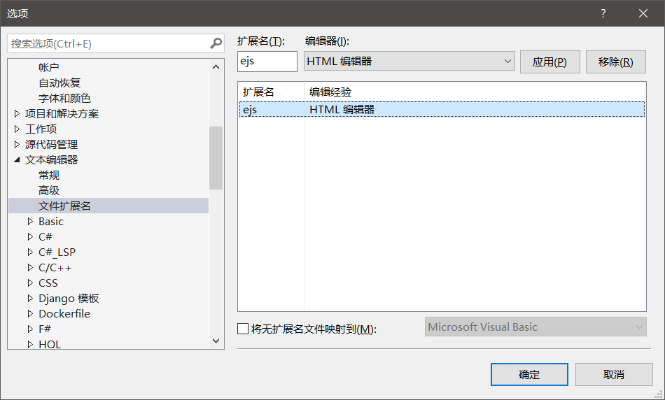 求助, VS2017不识别ejs文件格式,请问如何设置