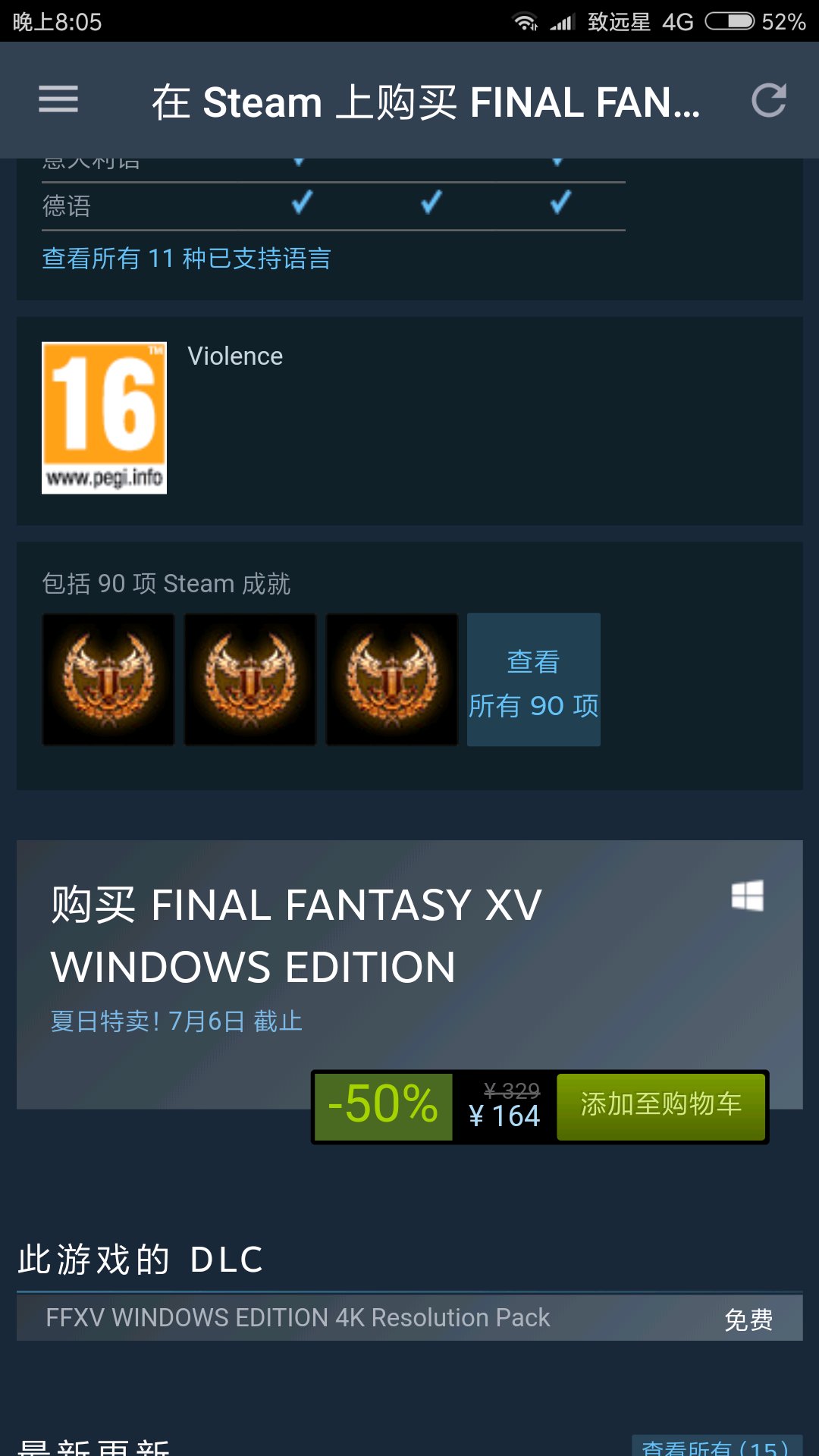 刚刚看到steam上ff15打折