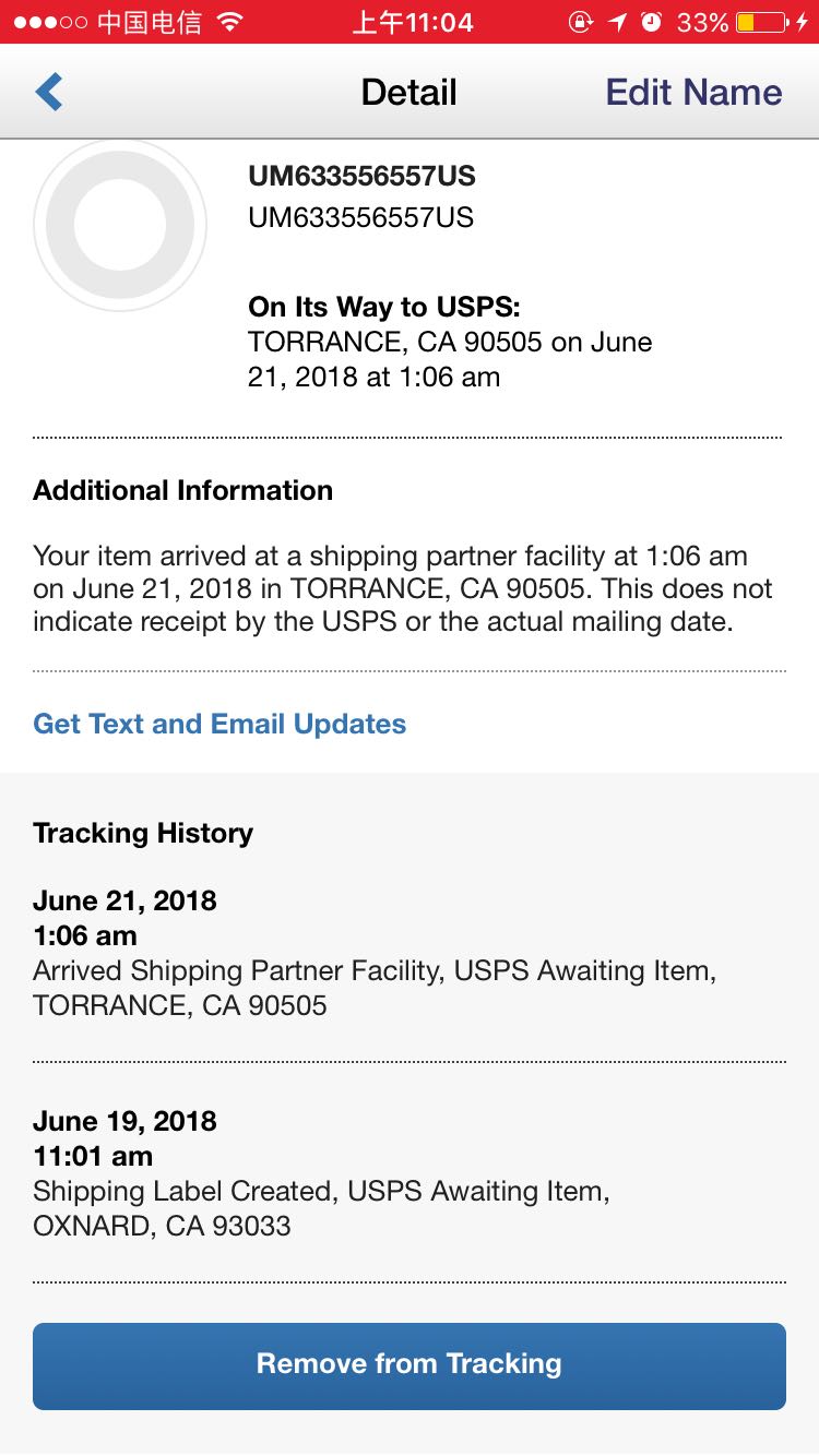 可能是卡在美国邮局了,如果很久都这样,联系客服退款比较保准