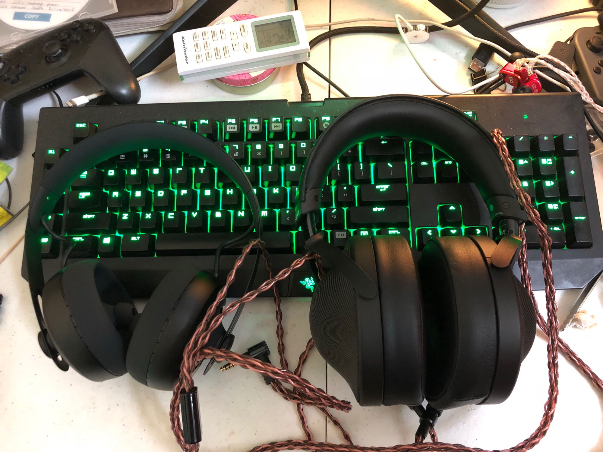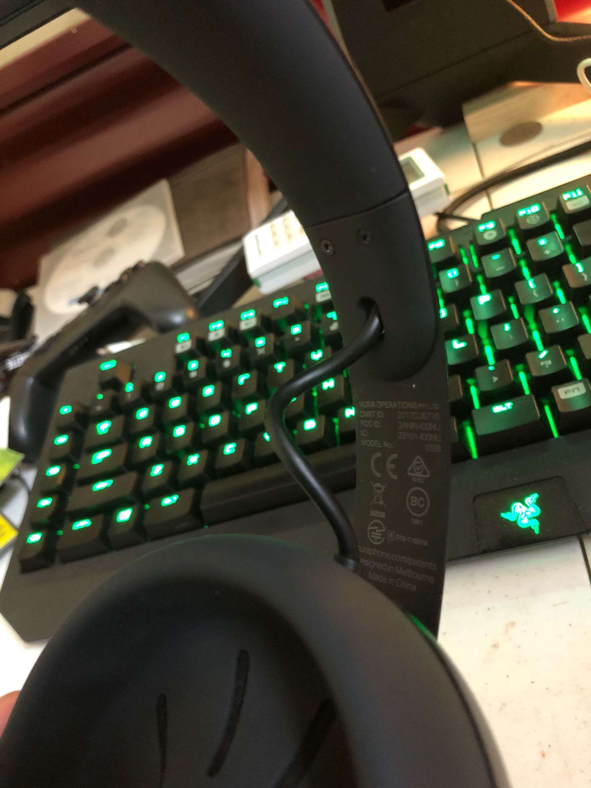请无视楼主杂乱的桌面,因为没有其他大耳了所以找来了大法奶罩来作为参照物,可见这幅耳机并不是很大