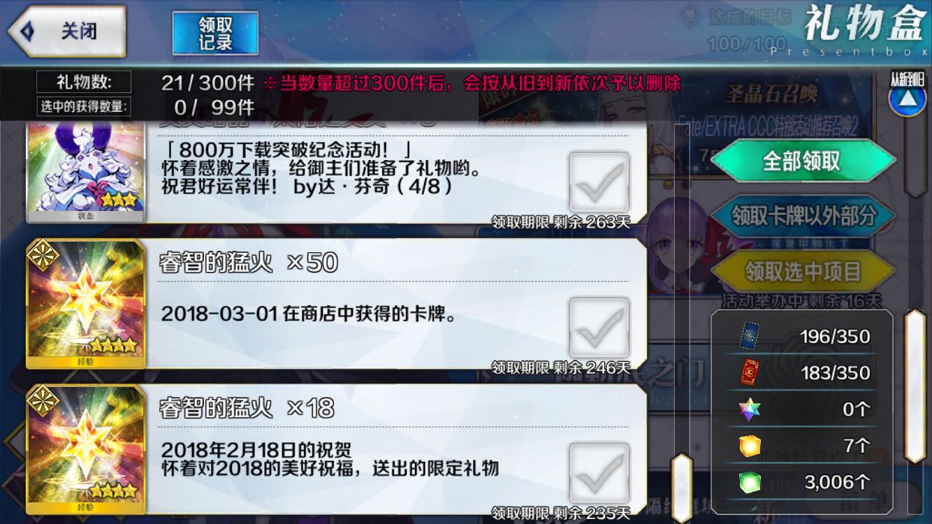 萌新今天为了给BB升级领了一下邮箱里的狗粮