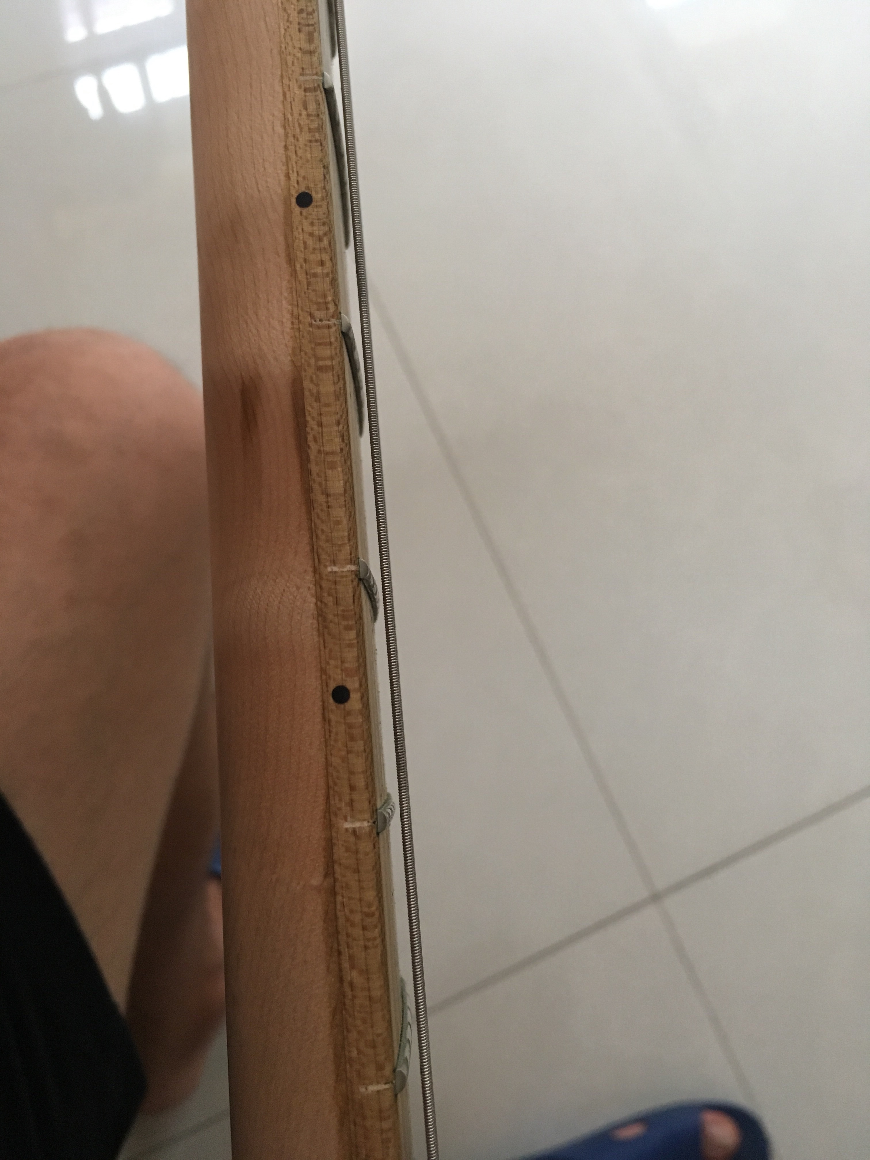 个人数据参考6弦到指板距离2.00mm到2.50mm 1弦到指板距离1.5mm到2.00mm,我个人的习惯比这个弦距更高,更高的弦距延音和音色好,随心所欲也不用特别在意按弦的力度。太低的弦距推弦手感不太好但对速弹有帮助