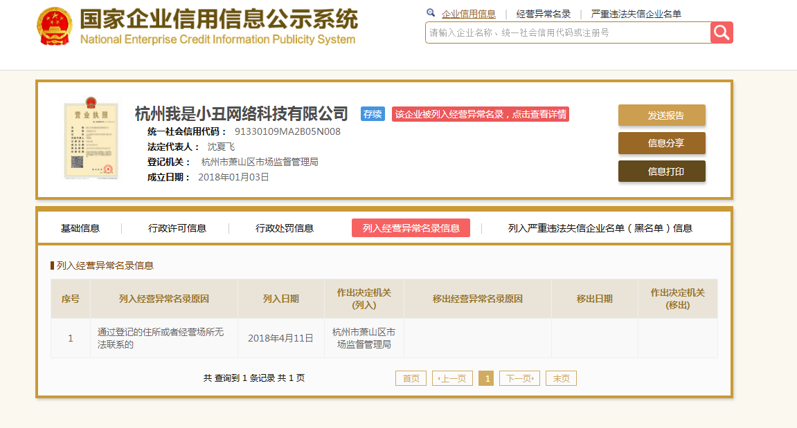 在 国家企业信用信息公示系统查公司是经营异常啊 写着 通过登记的住所或者经营场所无法联系的
