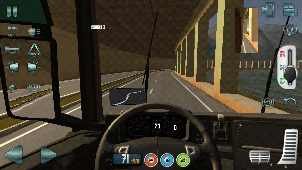 ,联机没有对话框,存在很大一个问题就是部分车辆没有轮子(如初始车曼),少数车辆有轮子(如最贵的斯堪尼亚S),亮点就是房间玩家数量可升至20人。收费站的话倒是有不少,现在已经遇到3个了,一般在国界处都会有收费站,新的一点是进收费站时不是直接开过去就走了,而是要接受一番检查(可能需要一段时间),不同货物的检查时间是不一样的,越大越重的货物需要更长时间。