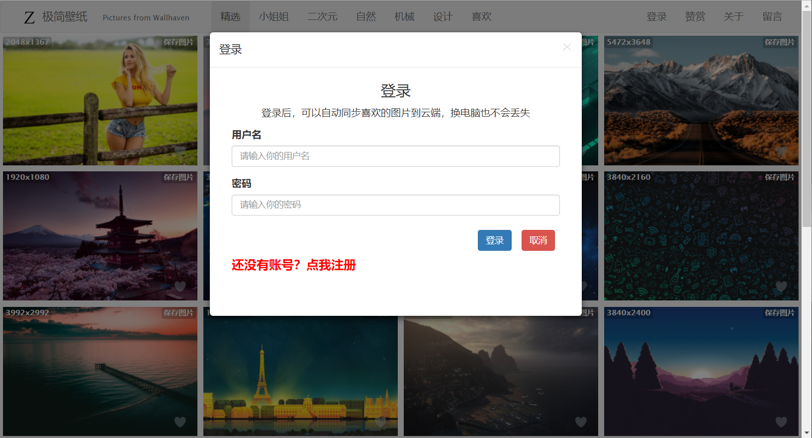 最近又重大更新了一波,加入了注册登录,登录后可以云同步喜欢的图片。另外换了一套更美观的消息提示插件。