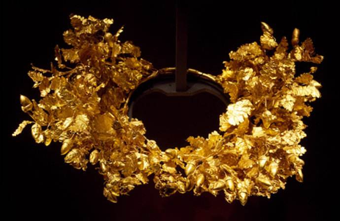上图为马其顿国王的葬礼冠冕,代表着死去的国王与诸神同在。