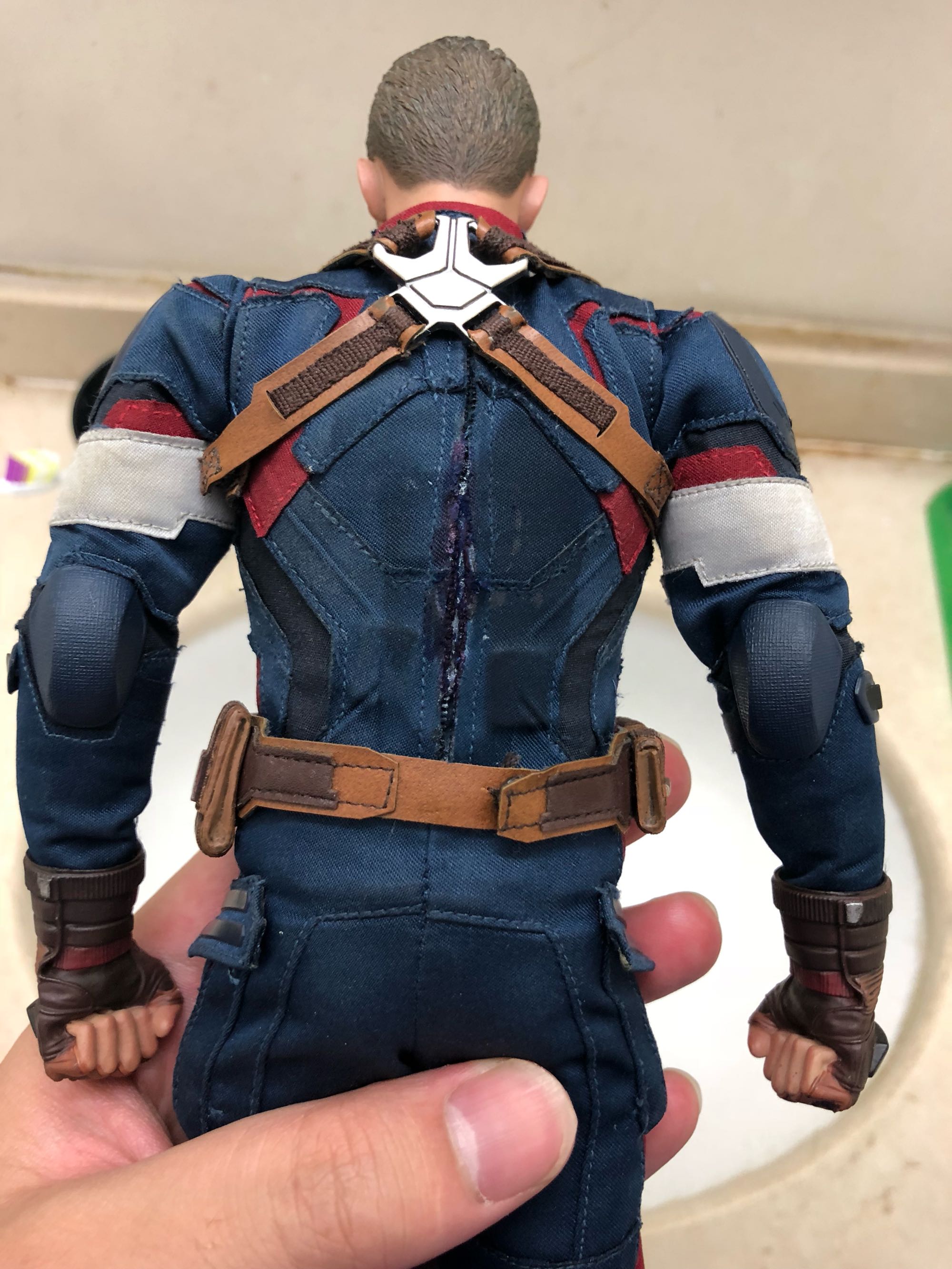 ht复仇者联盟2 美国队长 全配,盾牌有一小处掉漆,衣服拉链坏了于是用502粘死了,效果如图,肩带上的扣子粘死,不影响取下,左脚一处鞋带断了,502粘上看不出穿帮。具体见图。1350不刀不包,北京本地面交优先外地顺丰到付,售出不退换。