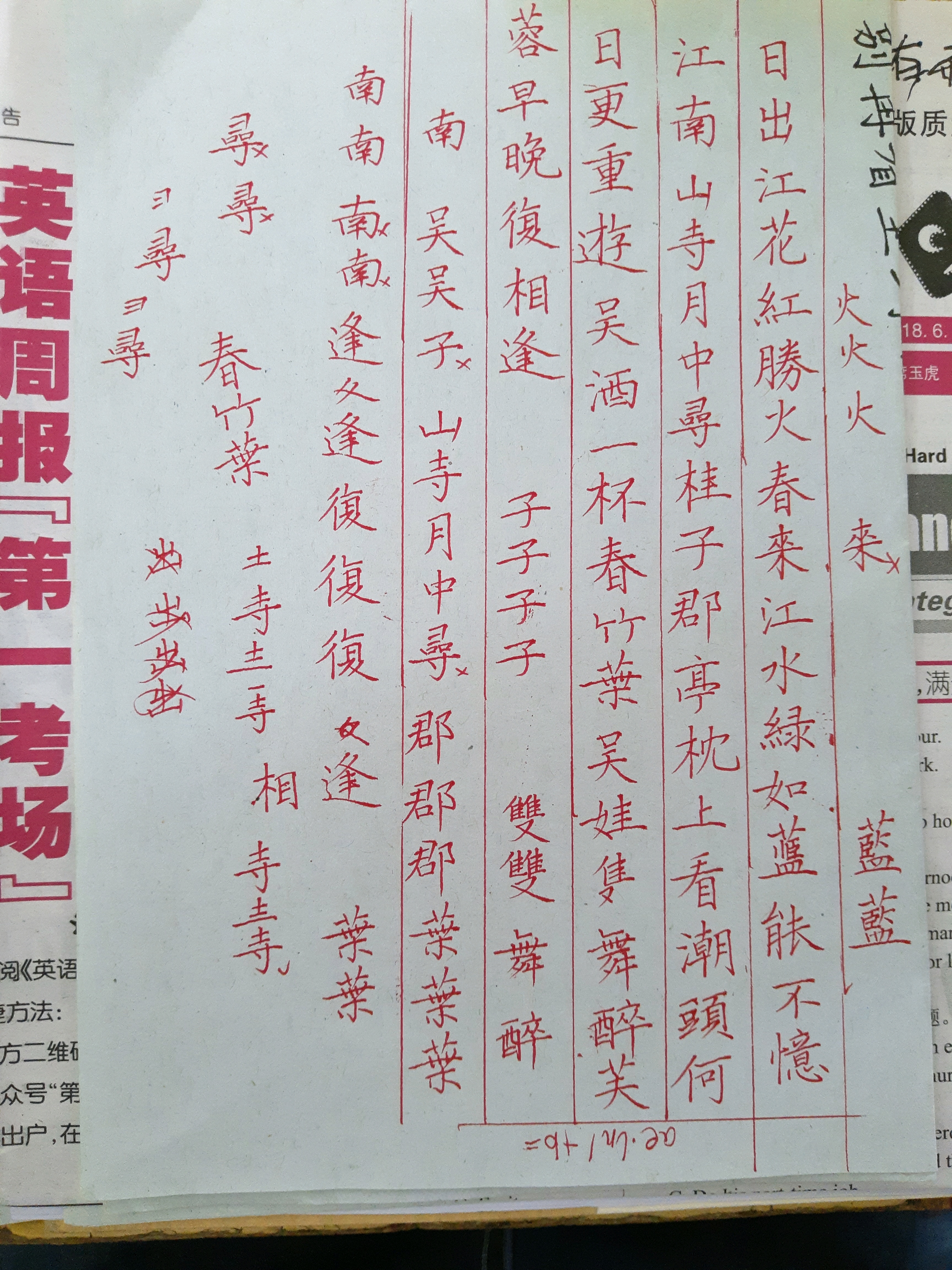 我和你一样,上课不听课,在写字,我高二,我只学过三年书法,学的还不是很好,比你还差一些,我把写字当做一种倾诉和逃避的方式,我在g吧看到你,无意中点开你头像,发现你也练字