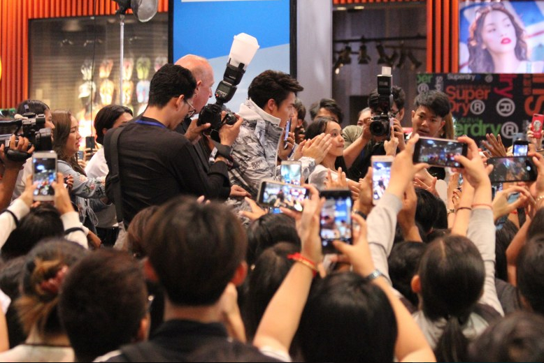 光是这些还不够!在活动上尖叫声和交织呼喊Mark与Sathit的声音在商场里高响,无论走到哪儿都能看到男女老少蜂拥过来送上鼓舞,以至于寸步难行,让这位小生极为惊讶和感动。小生Mark谈及此番来柬埔寨会见影迷道,