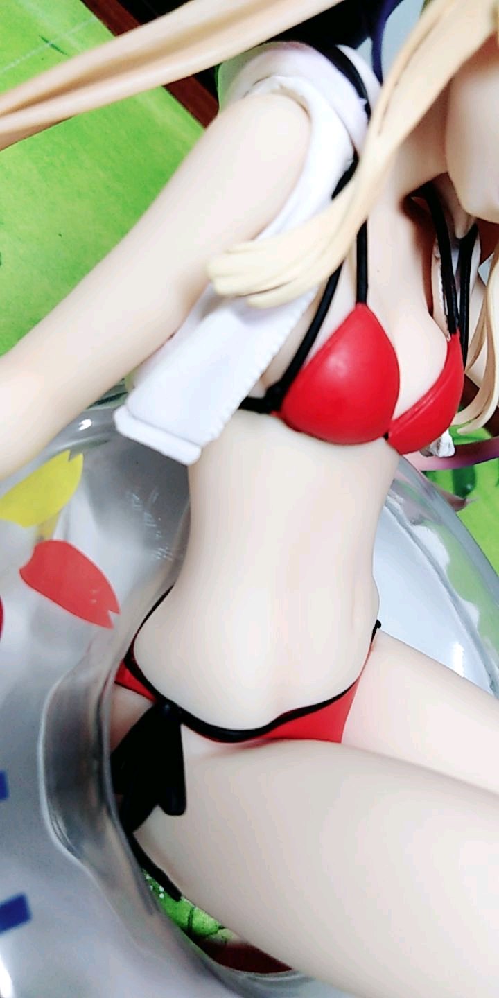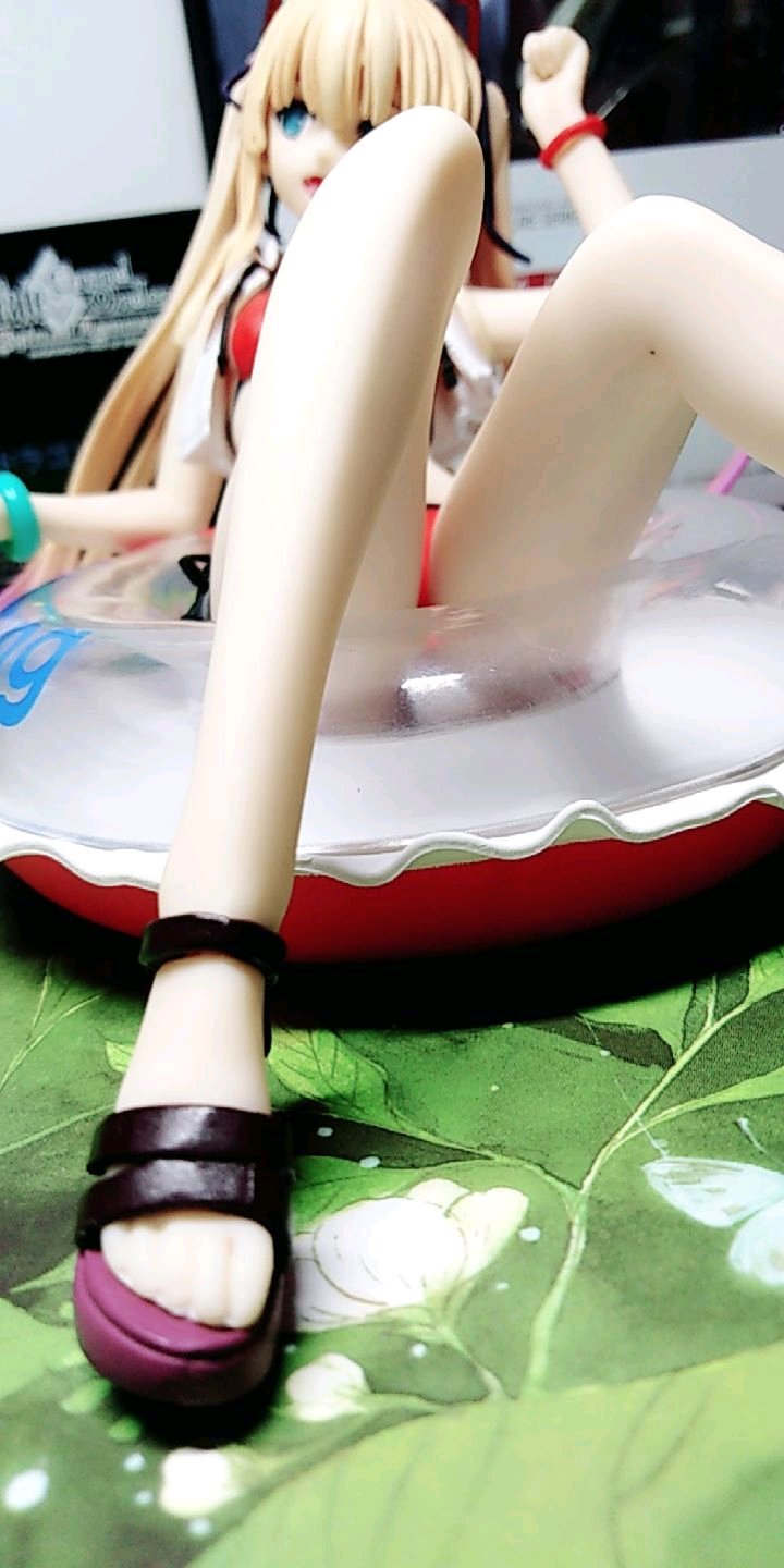肌肤摸起来没有颗粒感,很柔顺,摸着很舒适。外套的质感相比之下就比较粗糙了。至于头发,有着临界于两者直接的触感。最后摸一下泳圈,嗯,果然还是塑料。