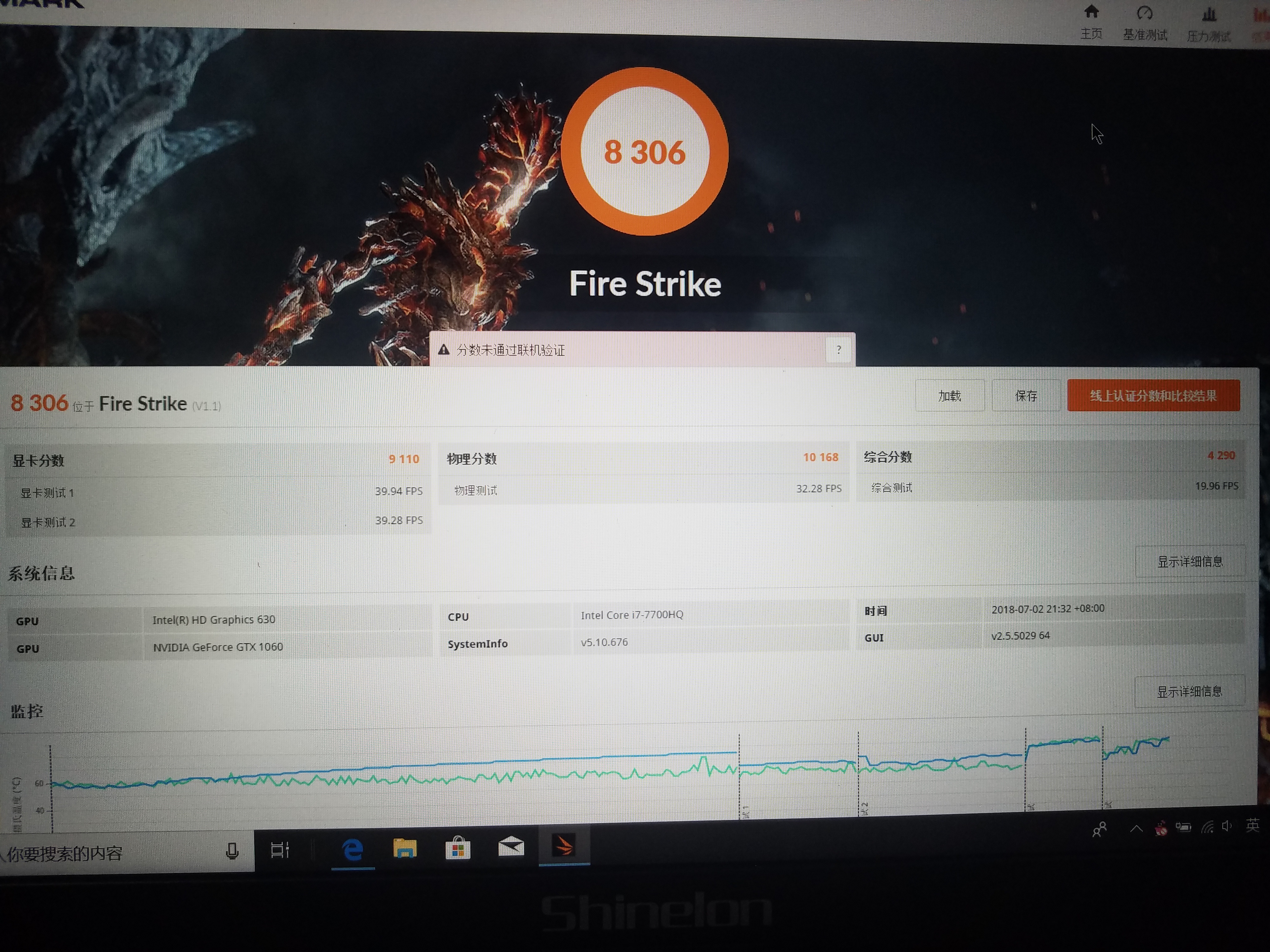 你这个1060显卡的分数稍低一点点