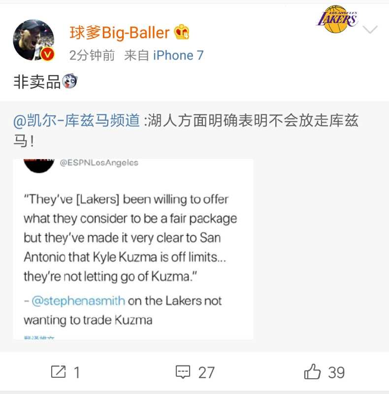 湖人唯一的非卖品 如果愿意给 早跟马刺达成交易了