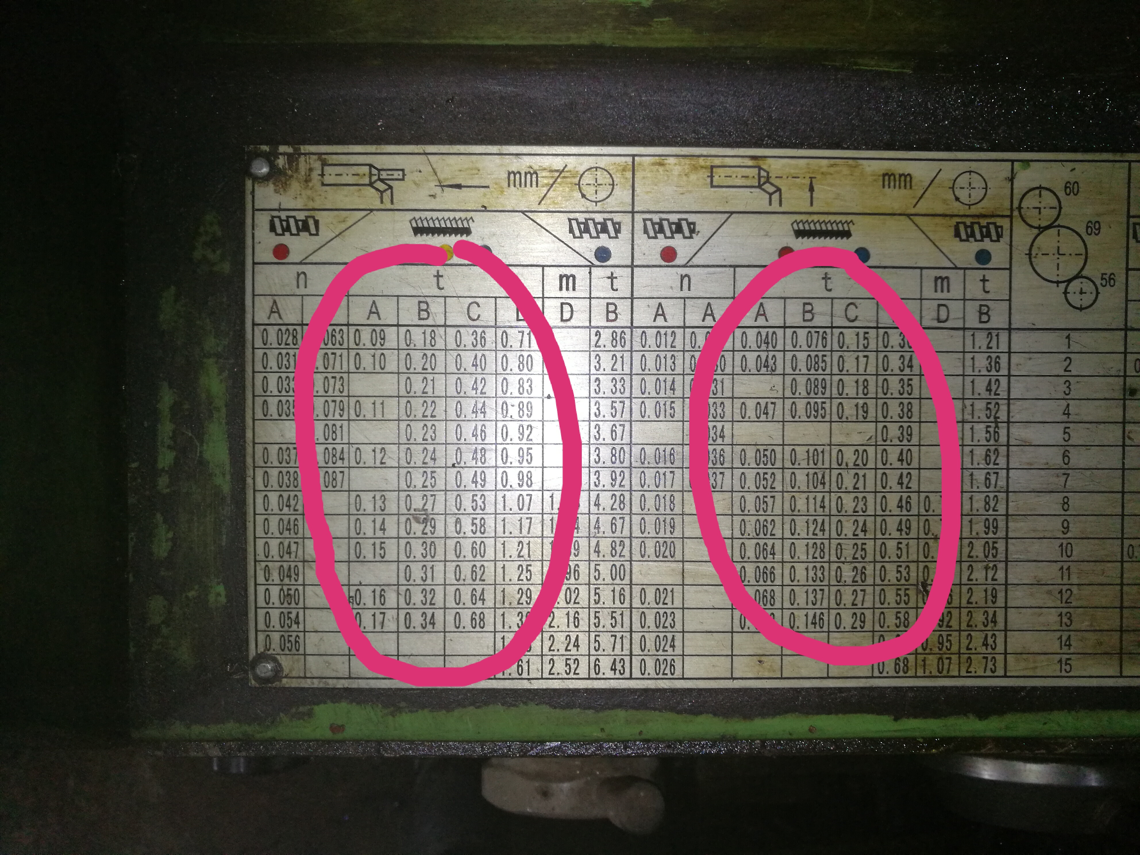 自己瞎搞,只会拧ABCD,和主轴转速。搞不懂自动走刀速度,只知道跟主轴速度挂钩。有的说看铭牌,我看铭牌上全是螺纹啊。有大佬能教我下吗?