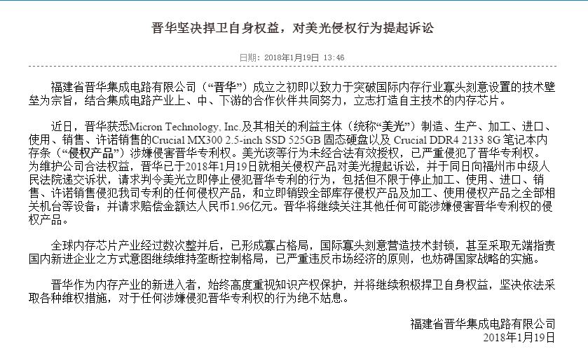 看评论有人写的,不知道是不是水军。说是镁光的人跳槽把dram的某些设计带到联电,然后联电和晋华携手注册了专利,反告镁光