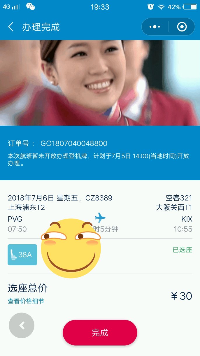 昨天晚上楼主提前办了个网上值机