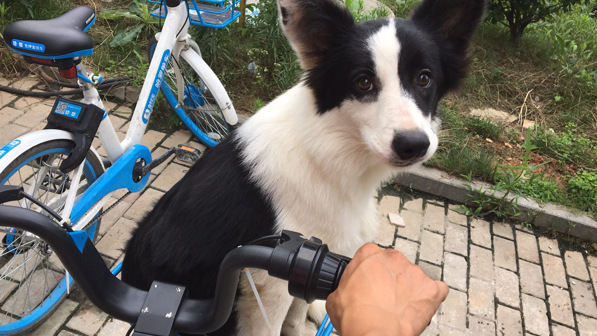 边牧喜欢坐共享单车前篮,坐着可神气!而且还喜欢自行车压弯或者下坡!!
