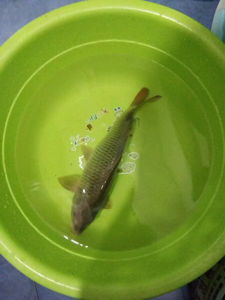 晚上没事和朋友一起去打窝打算明天钓,带了两根手竿去,先打了一些自己泡的米下去然后挂了蚯蚓下去,不到五分钟就上了这货,然后看天黑了就把窝子打了收杆回来了,运气不错,希望明天爆护