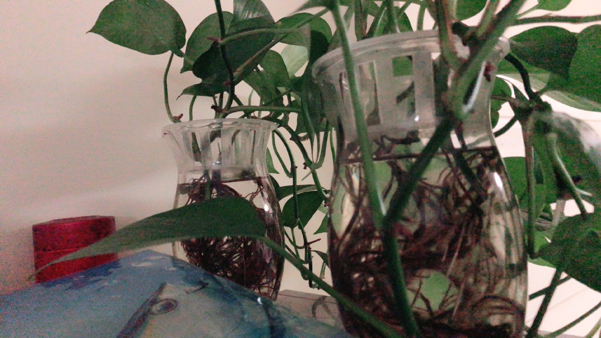 我的水培绿萝天天放在通风口,再加吊扇吹……天天换水…………才能保证叶片不生那些黑点…根不变黑……我好累啊,原本以为根长长些就可以不怎么理它了…是我错了……