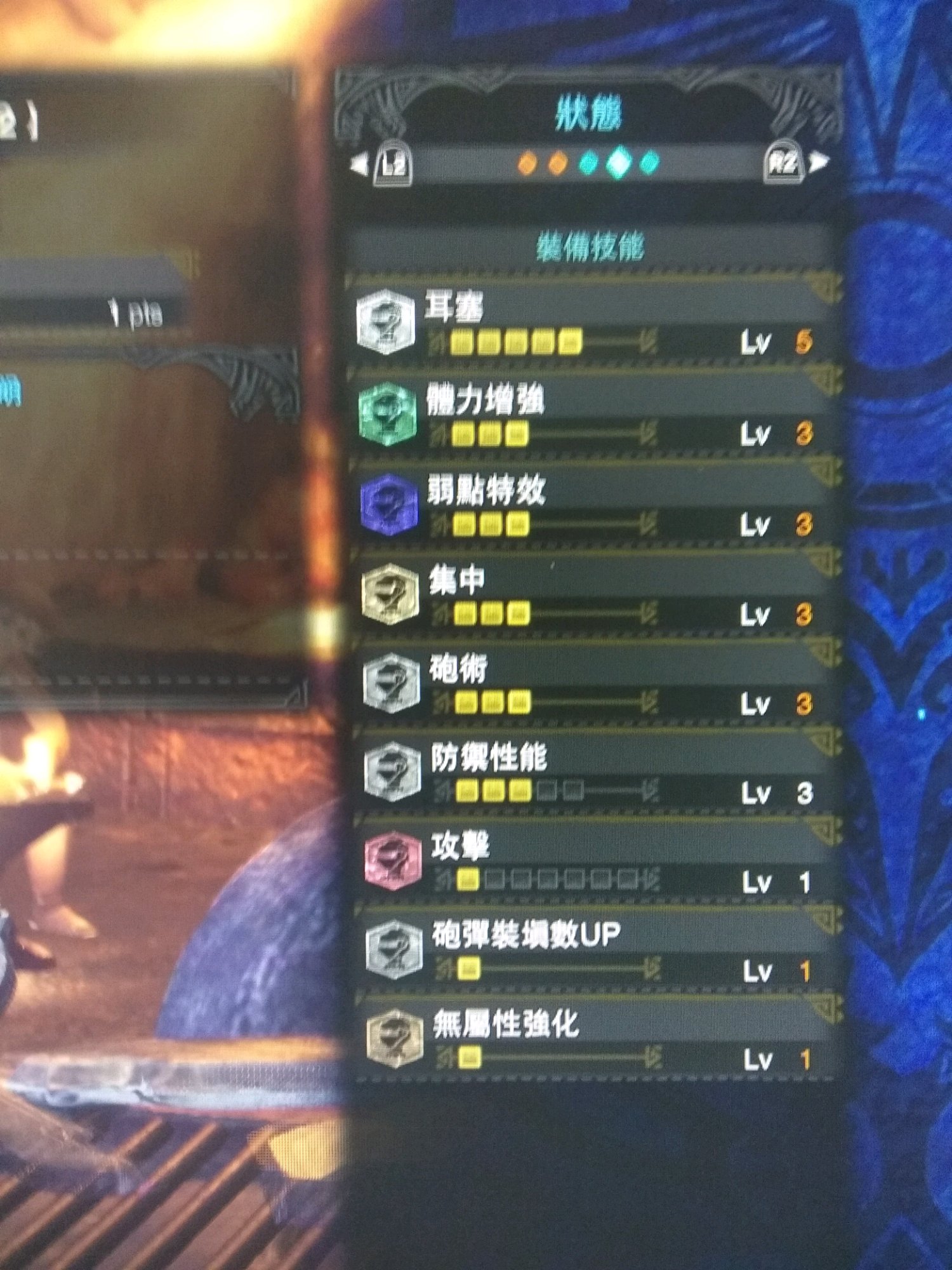 盾斧想配一套白斩刚刃,弱特3浑身2攻击4,炮术3集中3,增弹无击的最强配装,可惜差一个二级孔。等贝希摩斯出来估计有戏。