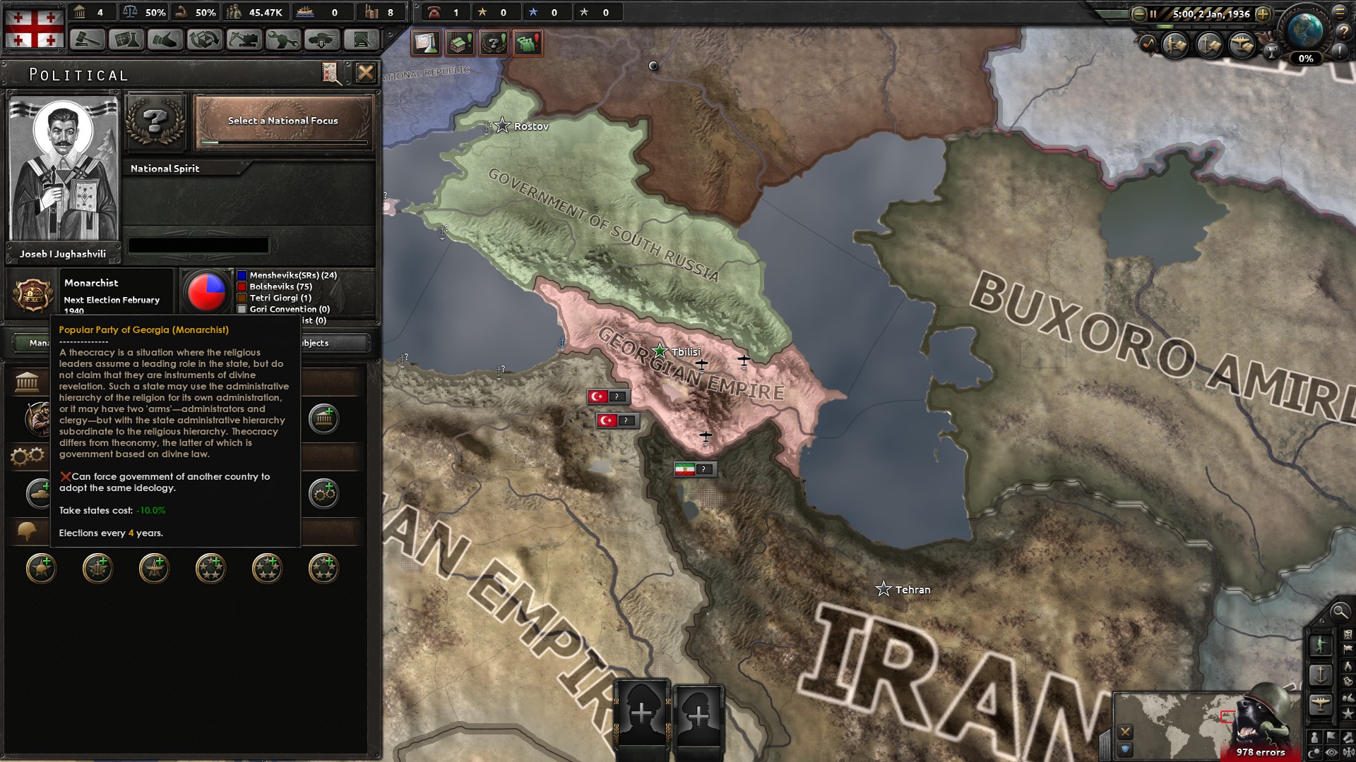 并成功击退了邻国亚美尼亚的武装干涉。尽管如此,格鲁吉亚当局内仍是鱼龙混杂:社革右翼,保皇党,民族主义者潜伏其中。奥尔忠尼启则与他的革命战友贝利亚致力于稳定国内政局,但在另一边,一位格鲁吉亚神父似乎听到了神的启示,要求他去重建大卫四世的伟业。。。