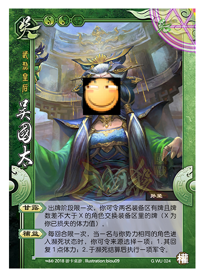 考虑再三还是把脸挡一下。这次两技能倒着说,因为甘露完全没变化直搬身份局,毕竟在孙尚香、凌统限制一次失去已有影响。