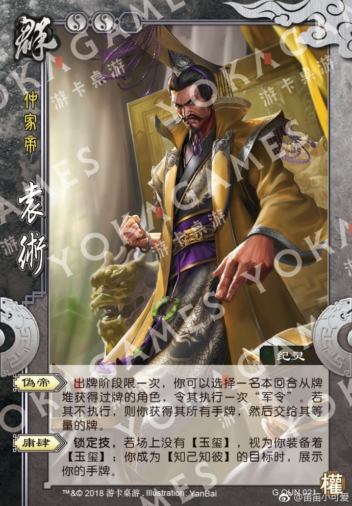 终于来到韩旭宠将袁术。再一个改动后与身份技能重名的武将。