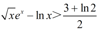 问题简化为证明其导函数单调递增且有零点,在零点处原函数大于右式3/2+ln2/2