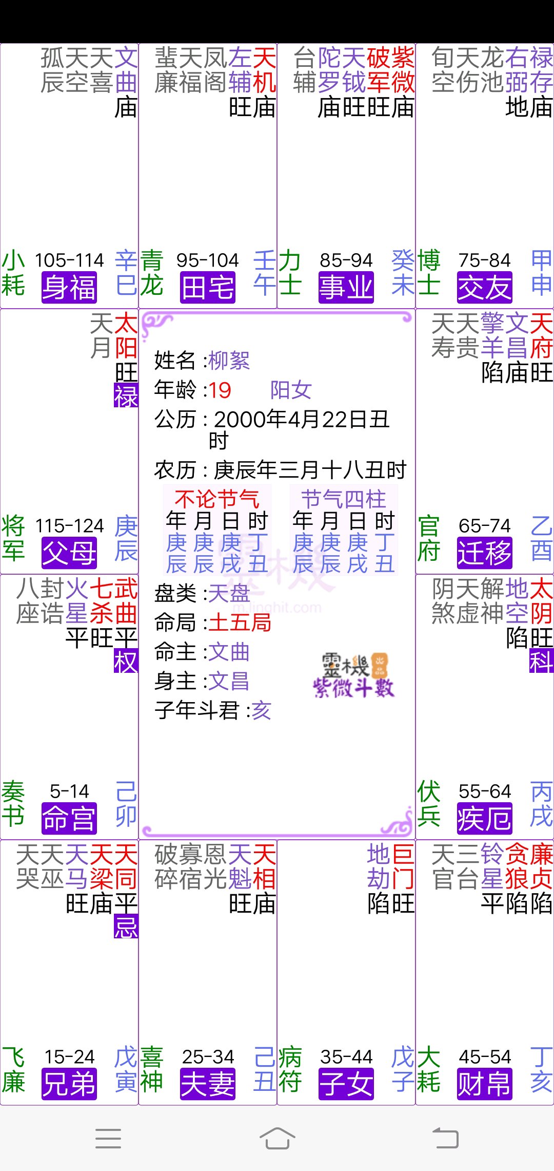母亲没有身体不好,父亲身体不好,他年轻的时候受过伤。这个盘是我的盘下一个时辰的盘。其实我是想看哪个盘比较准,是符合我的基本情况。