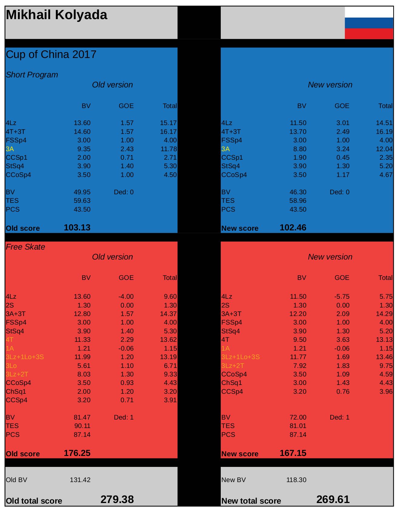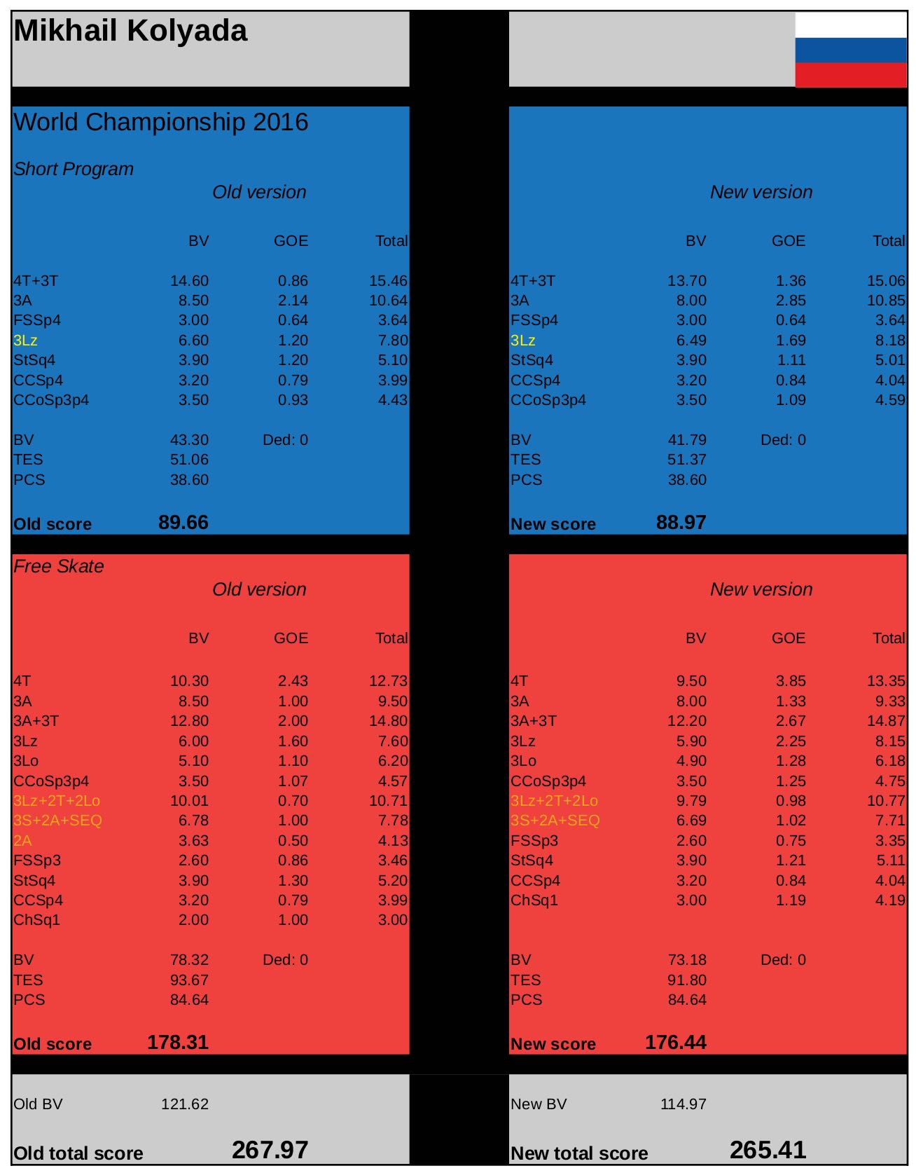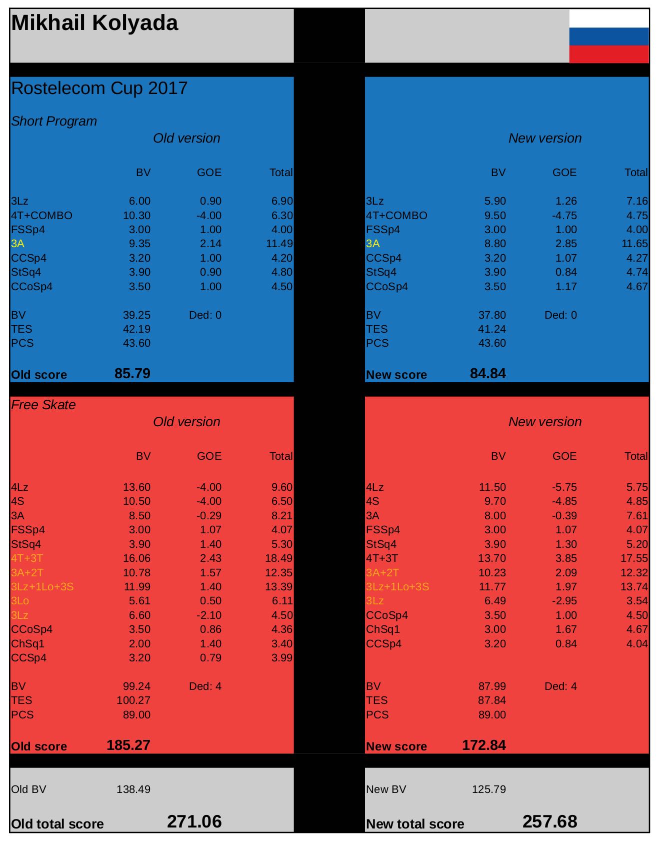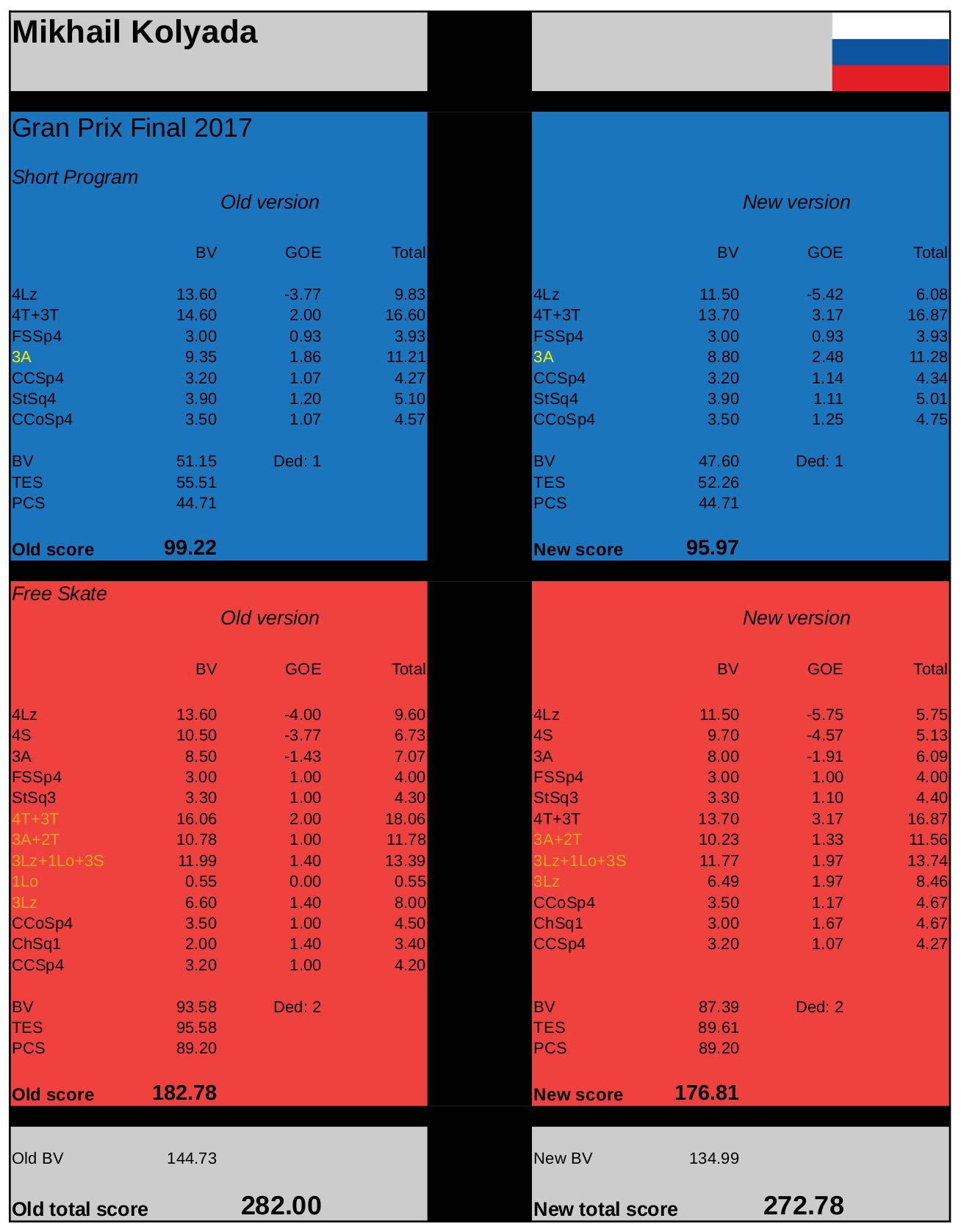 就是俄国冰迷根据五场比赛换算出了新规则的得分,然后取平均值得出前两张表的结论