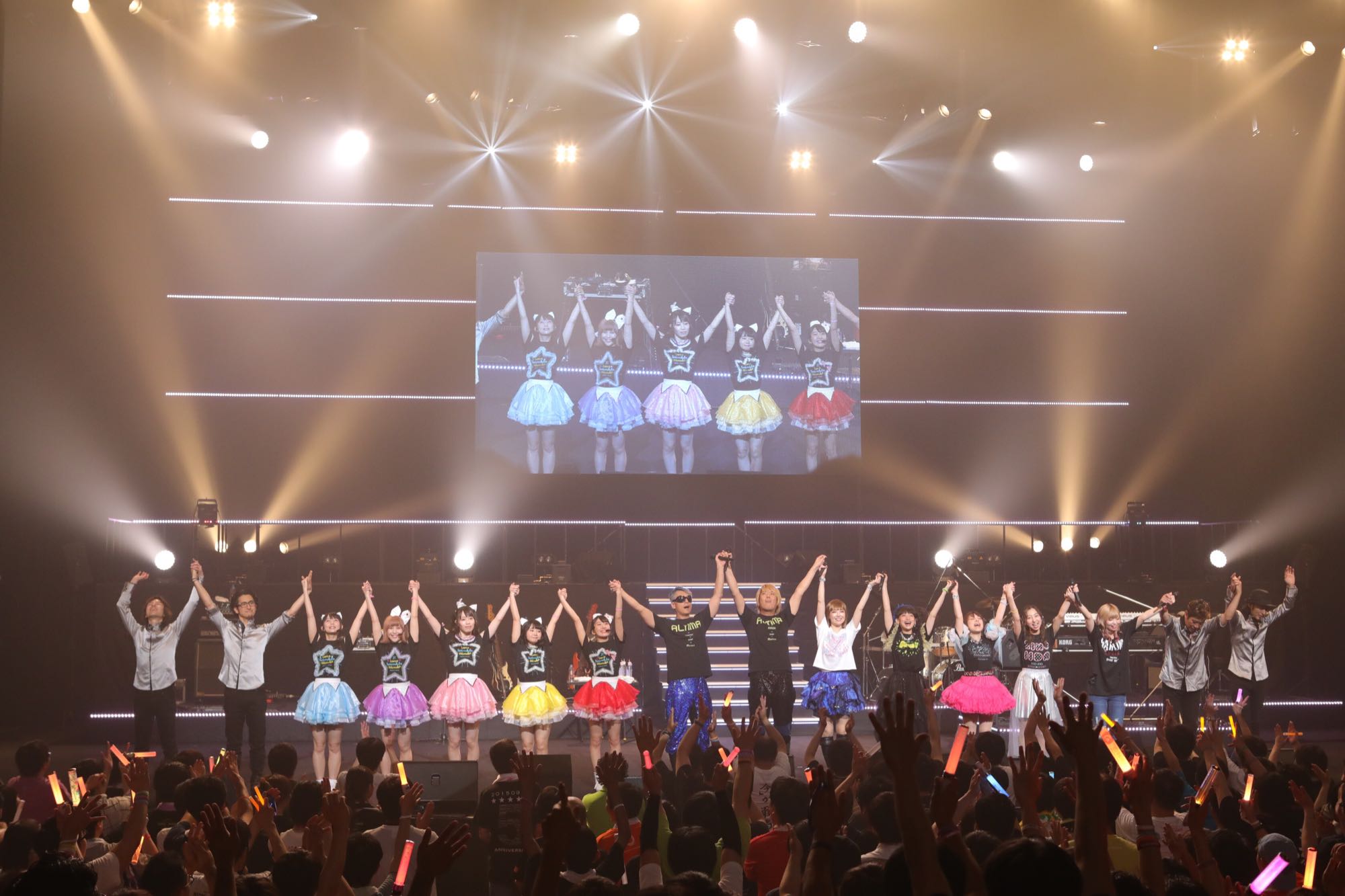 MC的时候,“把平均年龄给拉高了!”(南酱道(小学生式谦虚))、“我不休息的话下面没办法再继续了啊!/现在是老人时间!”(K姐道(KOTO様你说笑呢你还有连续两个月的巡演))她们几个笑着说这些自虐的梗,当然还是很认真地为大家展现了出色的Live。NBCfes的时候只唱了一首,但这次居然以各自C位的形式演出了三首歌。第二首歌是由南酱担任C位,演唱了同样是可怜Girl‘s的歌曲“MY WINGS”。这首歌之后三个人一起坐在舞台中央,如果有什么地方出错了的话就开自我检讨会。真是一如既往的可爱啊。然后跟乐队成员、观众们一起开了茶会(其实是水分补给)。这次是K姐站到C位,说“要比Luce酱还要可爱才行”,竟然演唱了“Princess Bride”(PS这首真的很可爱!!!)K姐站在C位,其它两人站在左右稍稍后退,肯定会有很多人想起某个MAD动画吧(PS我也不知道这是什么动画Orz 还有这首歌原唱就是K 南跟黑唱的都是可怜Girl‘s的)