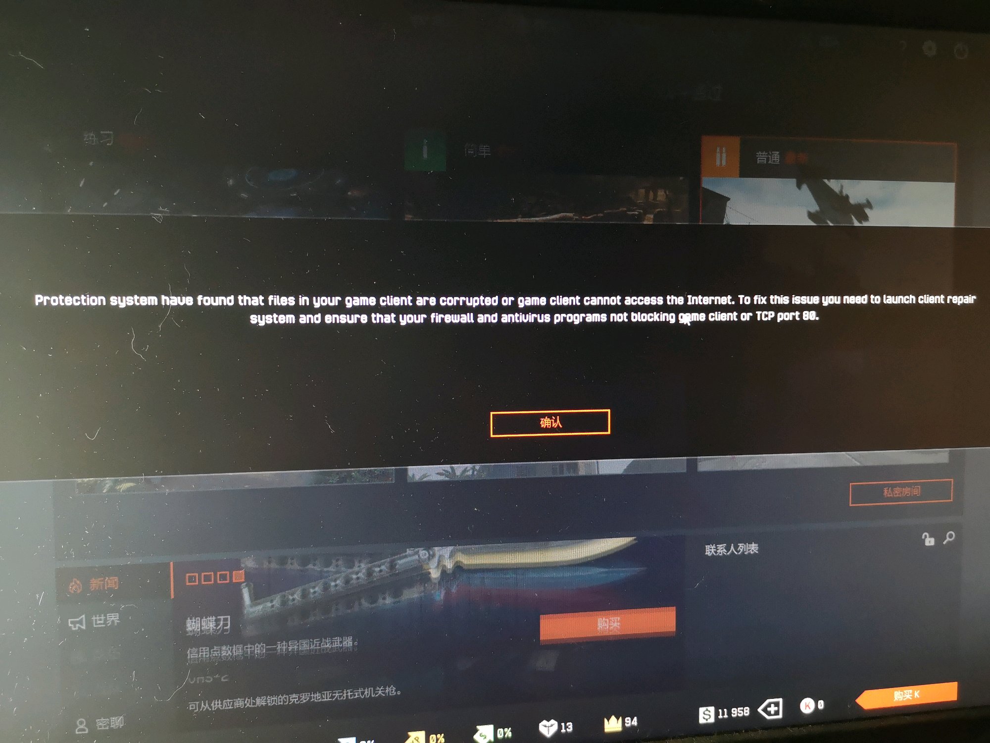 游戏客户端出现漏洞,系统回自动修复。但建议重新下载